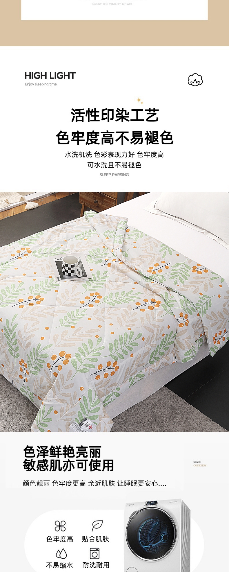 精细做工,严格把握品质;精选亲肤面料,质感丰厚,手感柔软;活性印染工艺,不含偶氮和甲醛对人体有害的物质