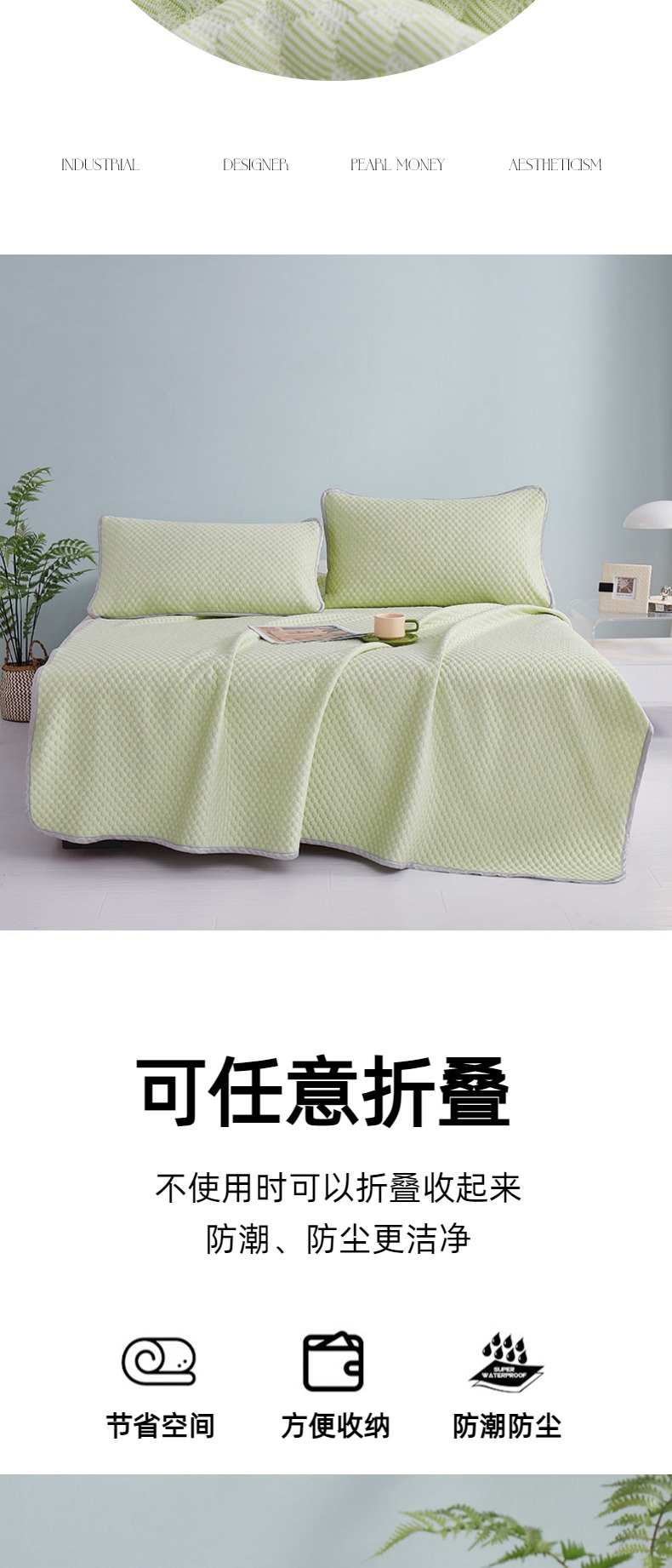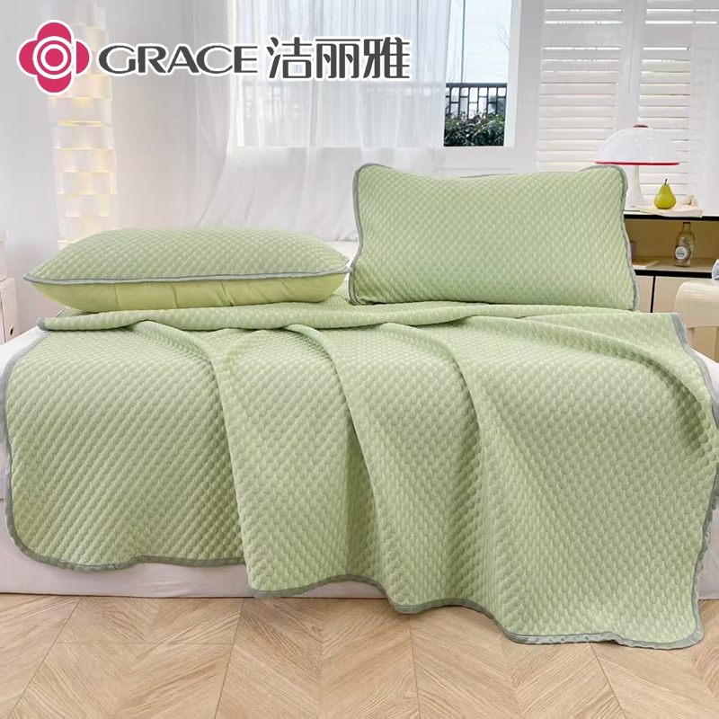 洁丽雅 凉感丝豆豆摩凉席三件套抹茶绿CP948B-1
