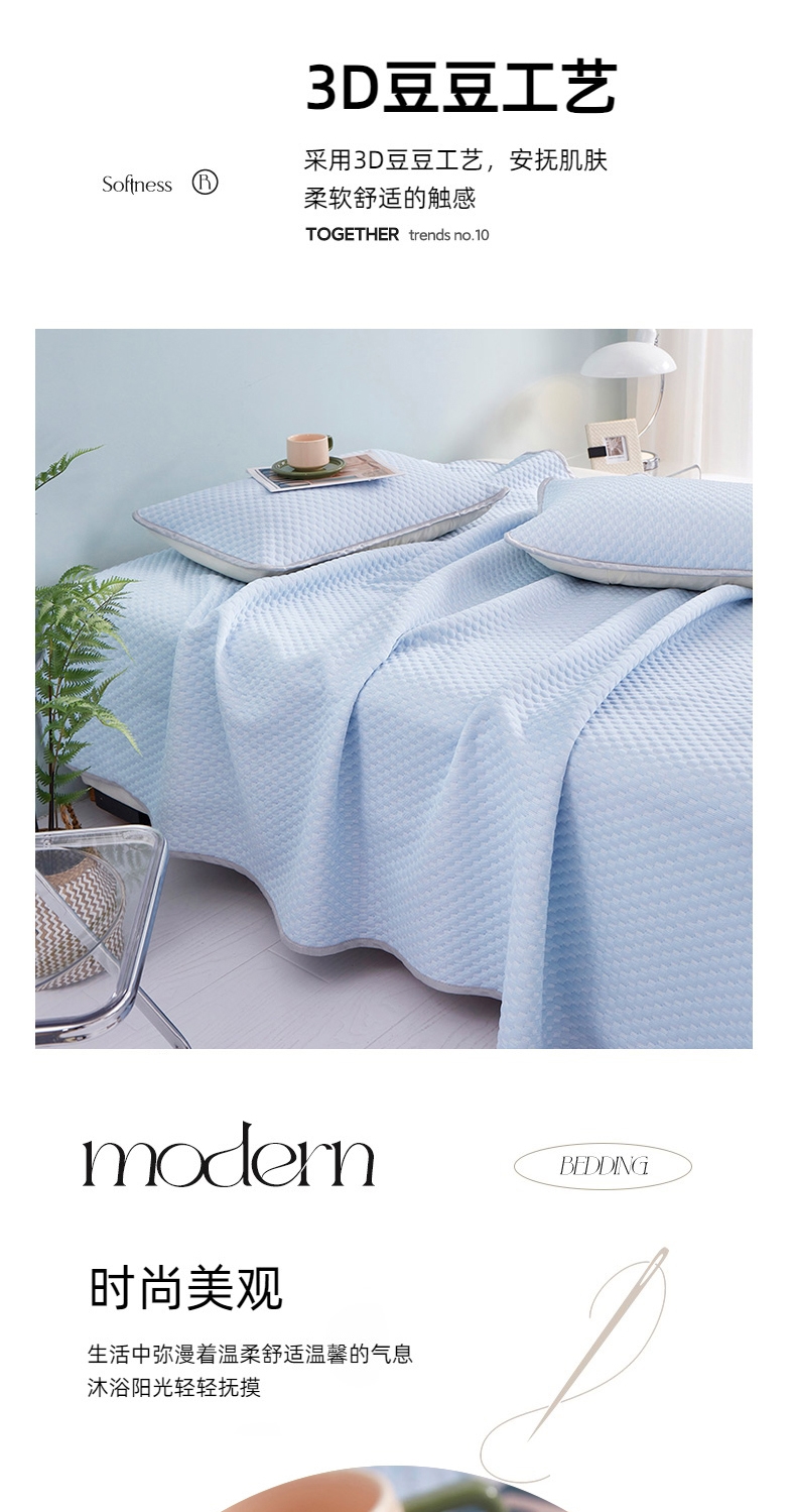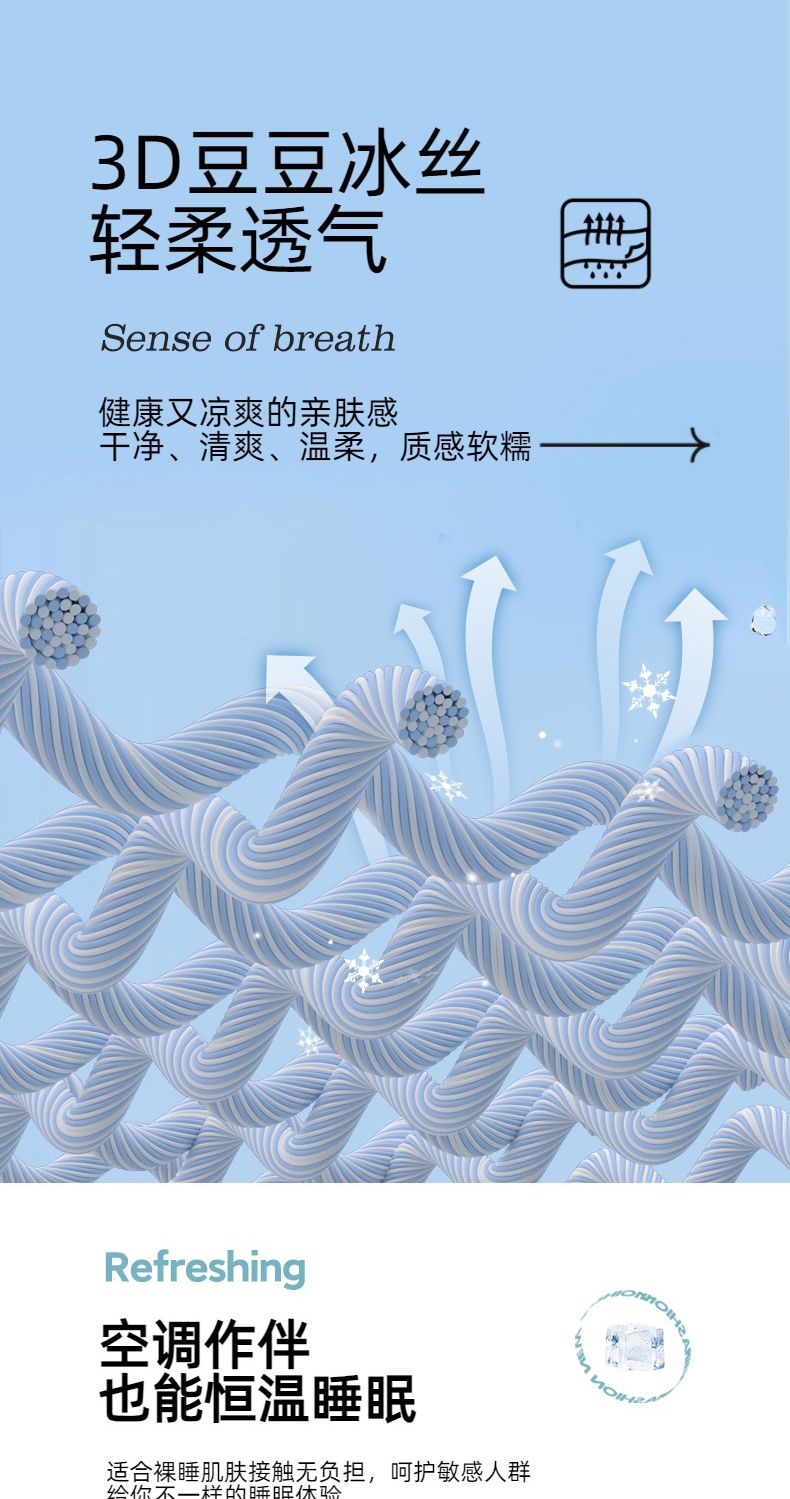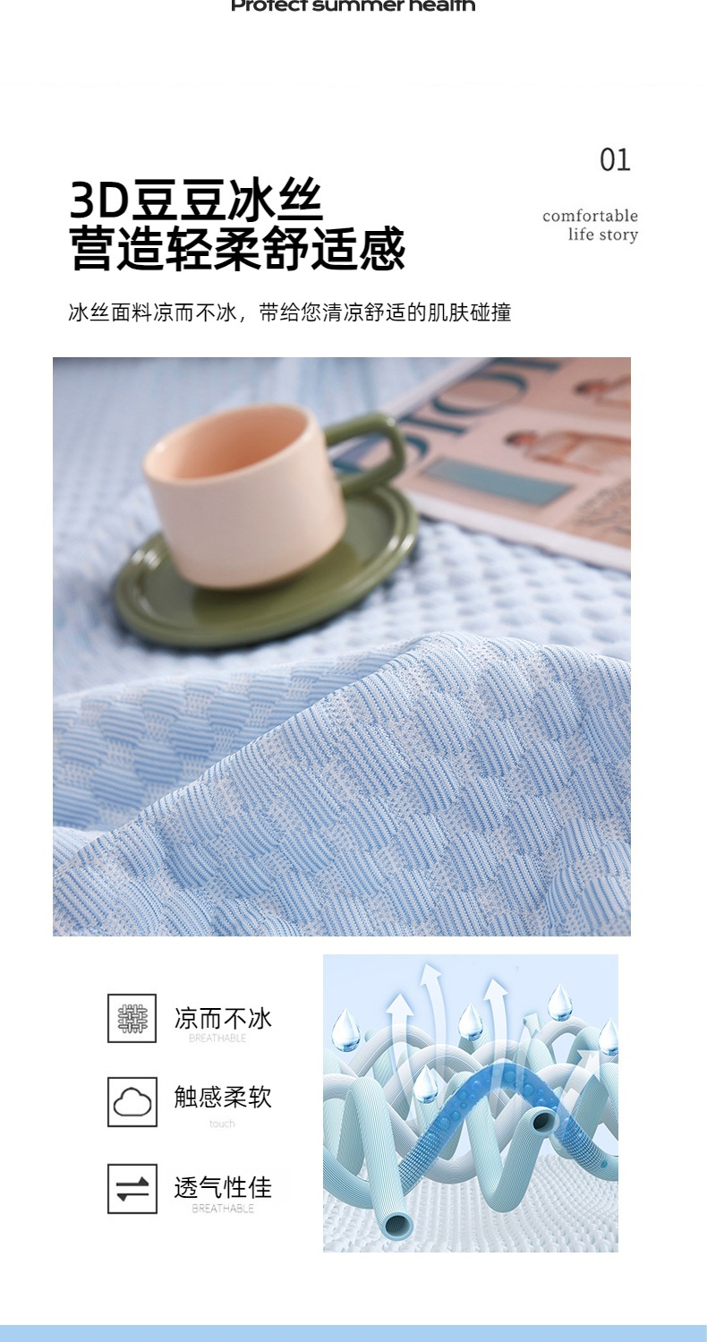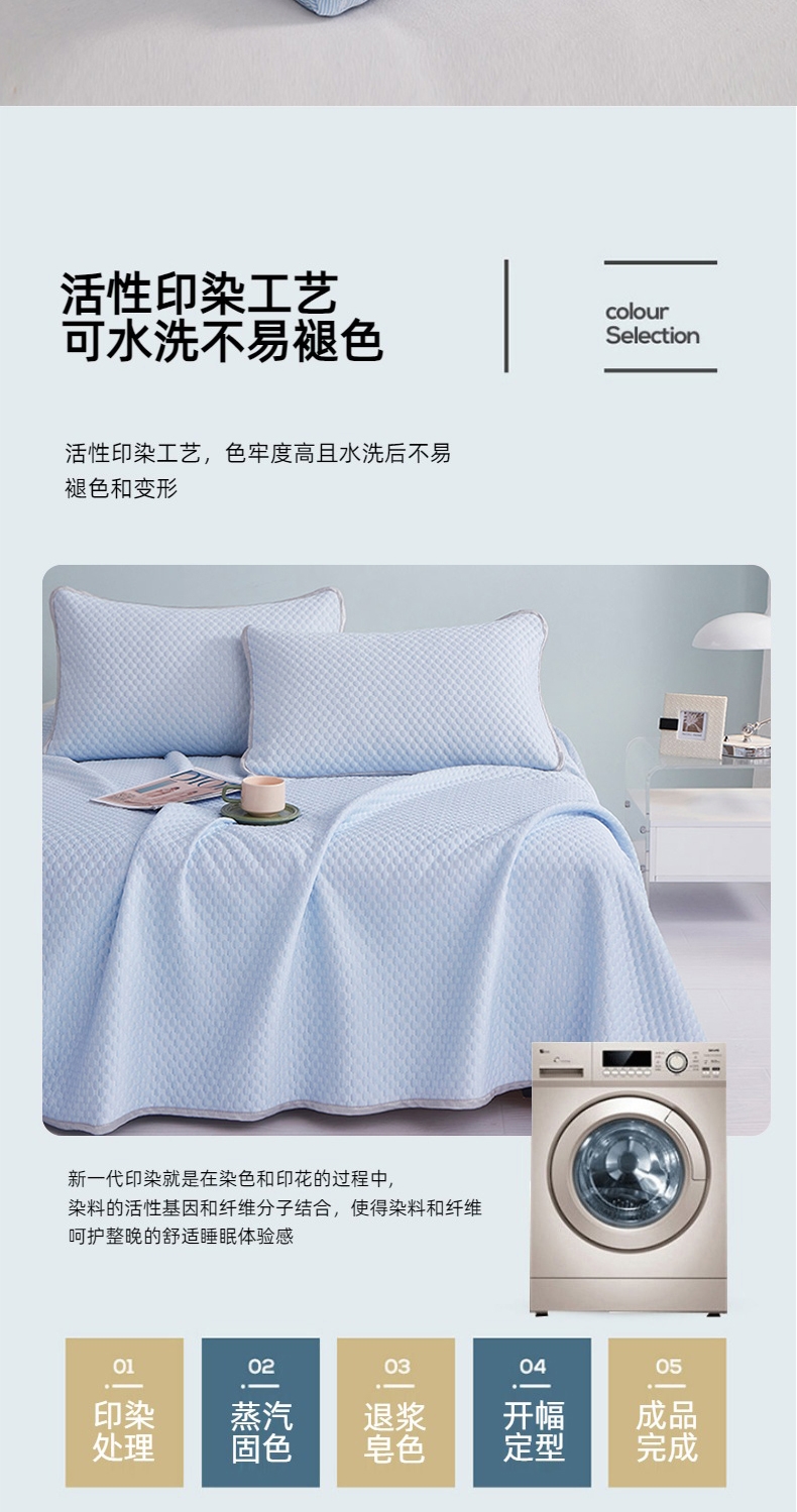 凉而不冰,吸湿透气;优雅大气花纹,彰显品质;柔软不夹发,席面光滑,清爽不沾身;