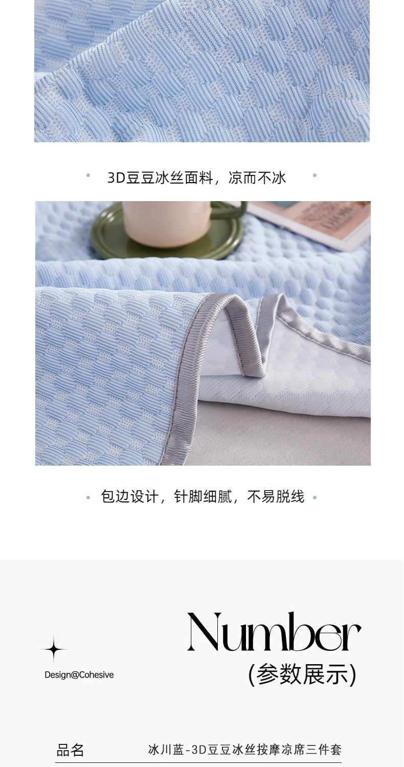 洁丽雅 冰丝按摩凉席三件套冰川蓝CP948A