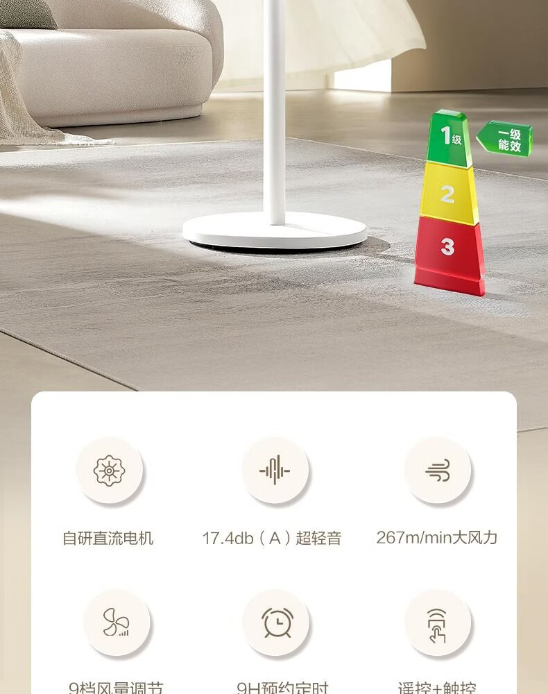 落地扇直流变频电机;9档风力选择;电机10年保修