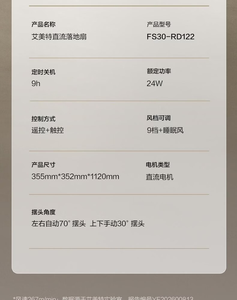 艾美特 七叶12寸直流台立两用FS30-RD122
