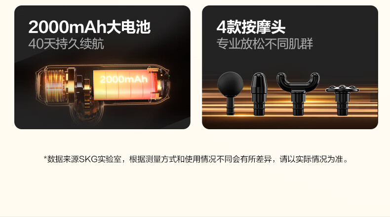 轻巧便携,强劲来袭;小巧强劲持久续航;高频捶打全身放松