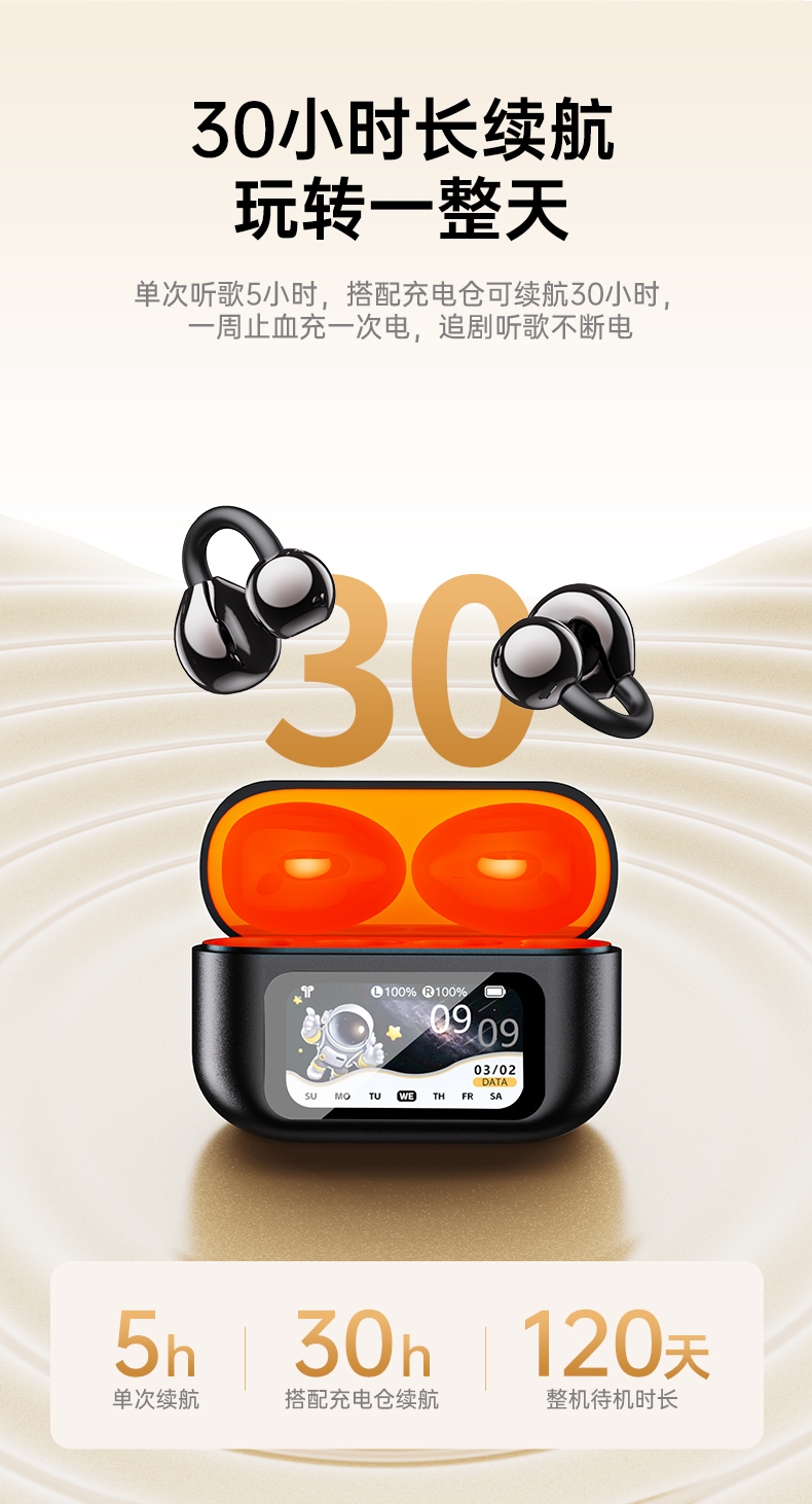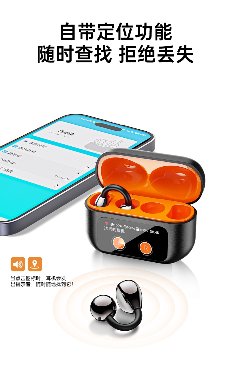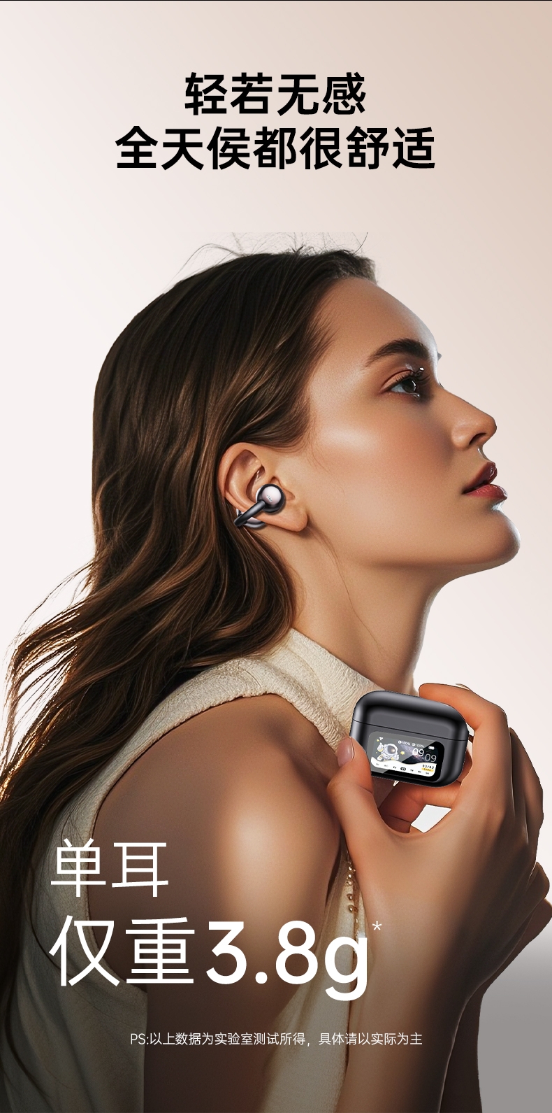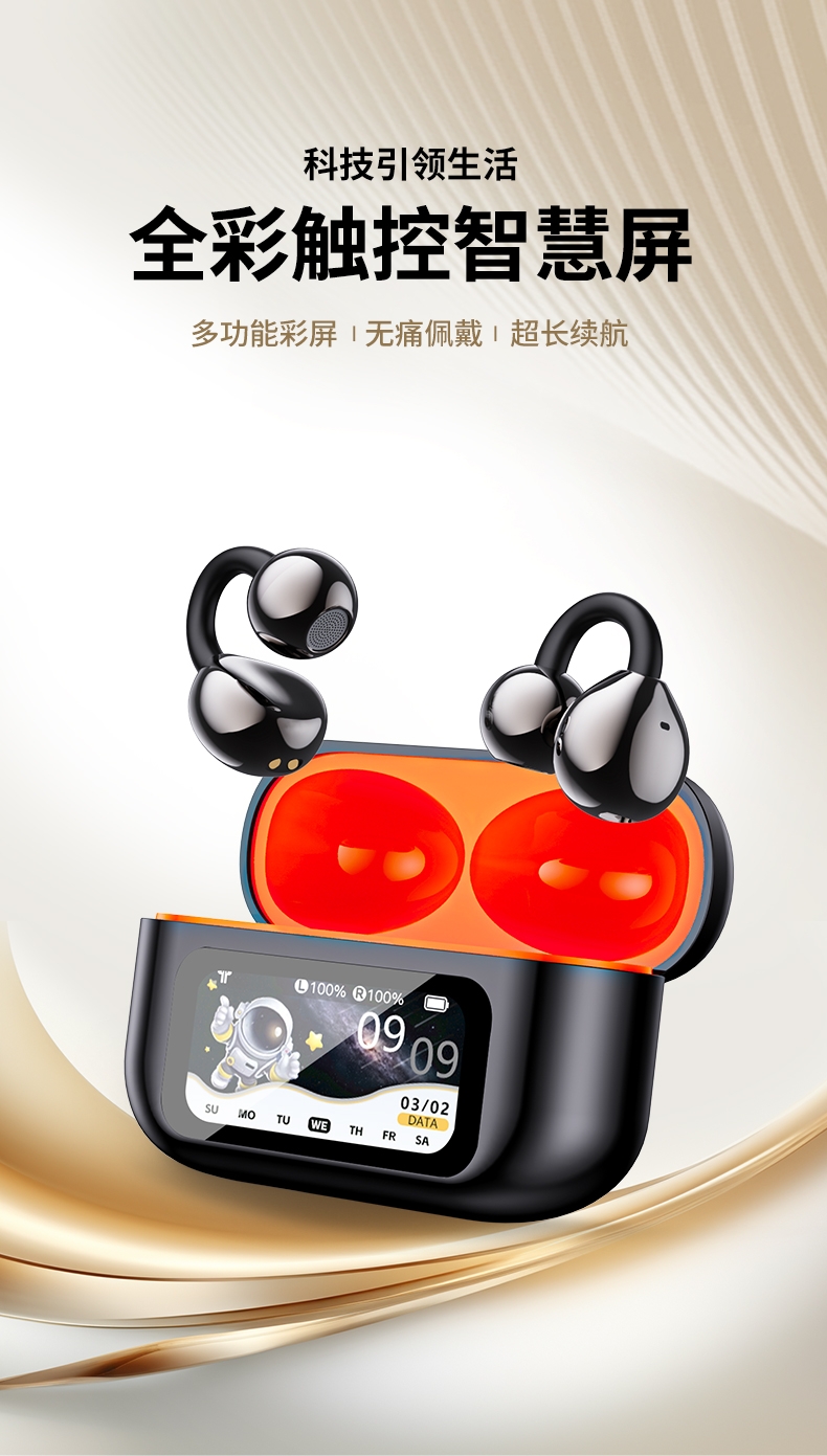 触控彩屏;耳夹式蓝牙耳机;无痛佩戴