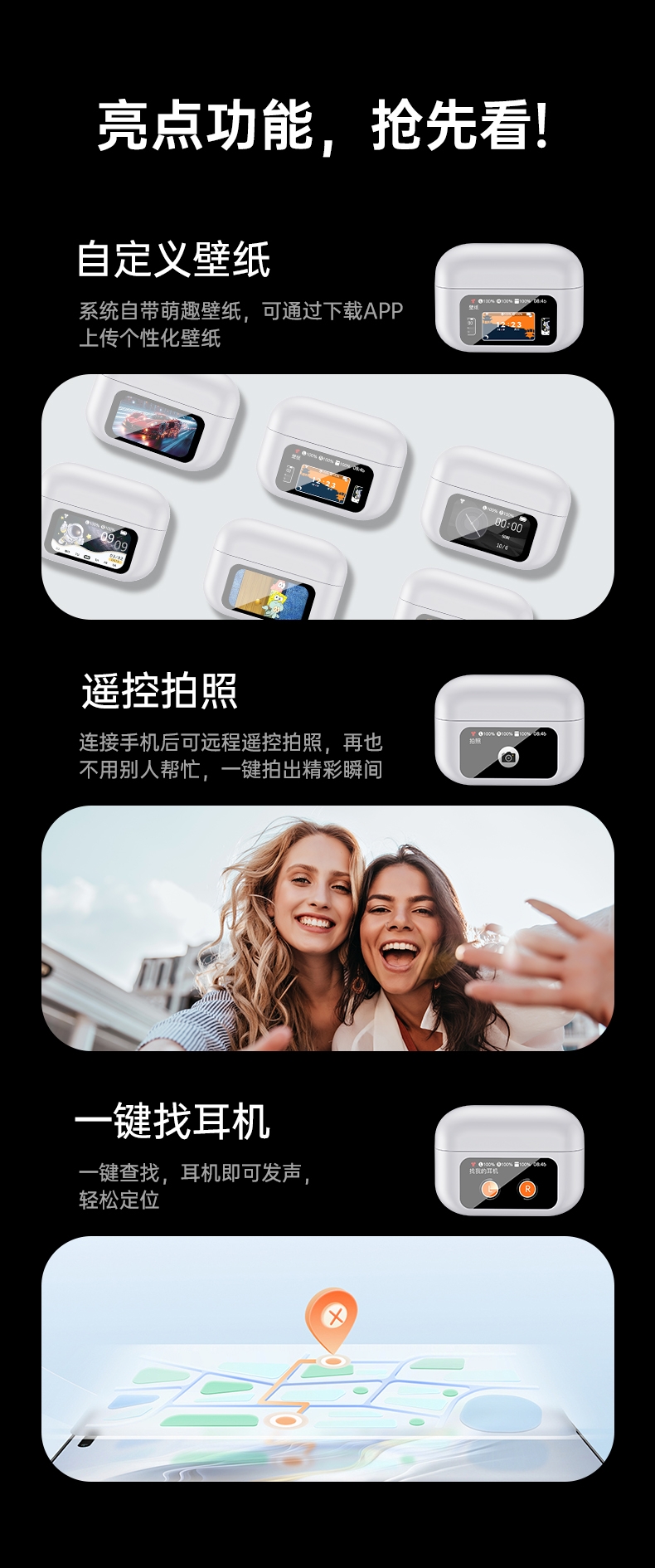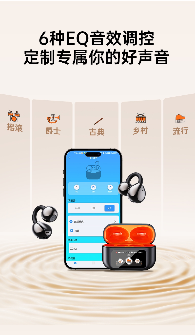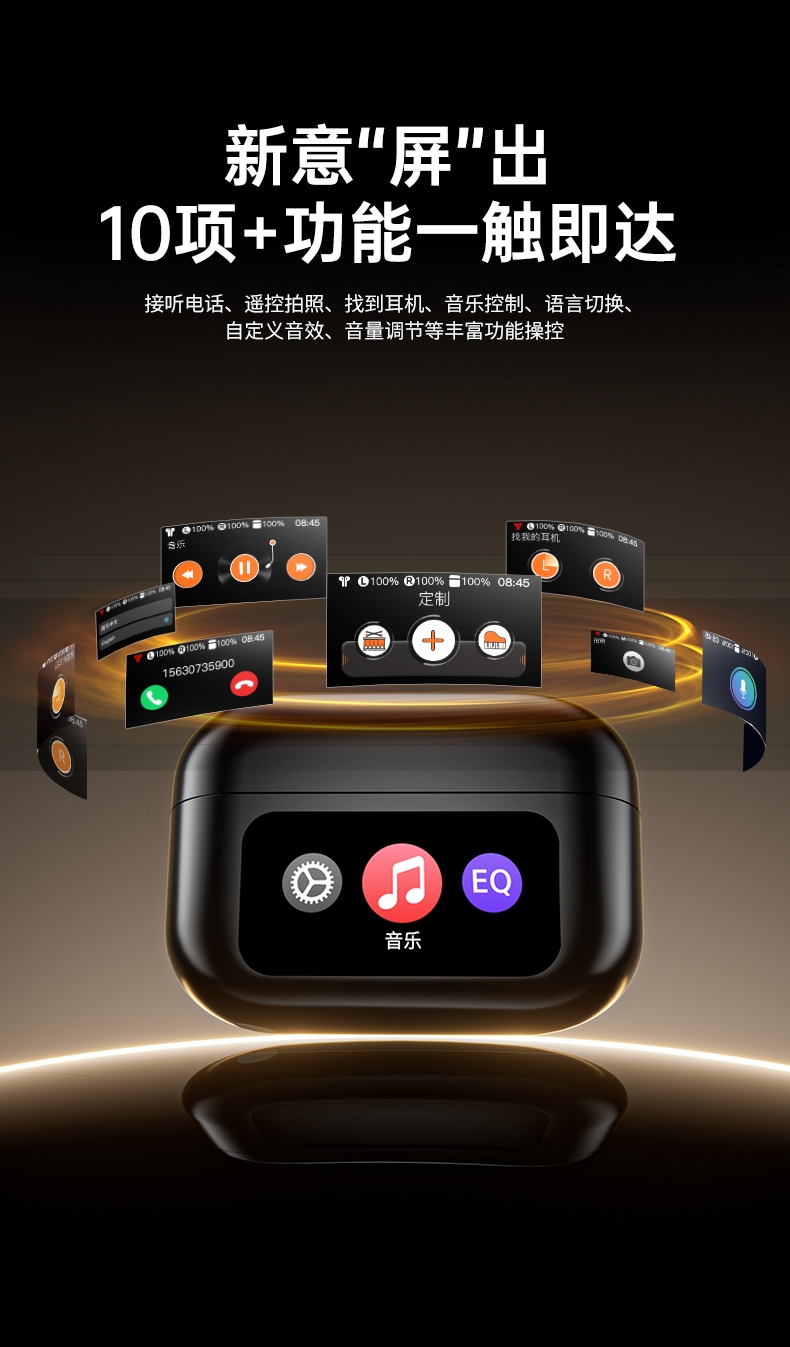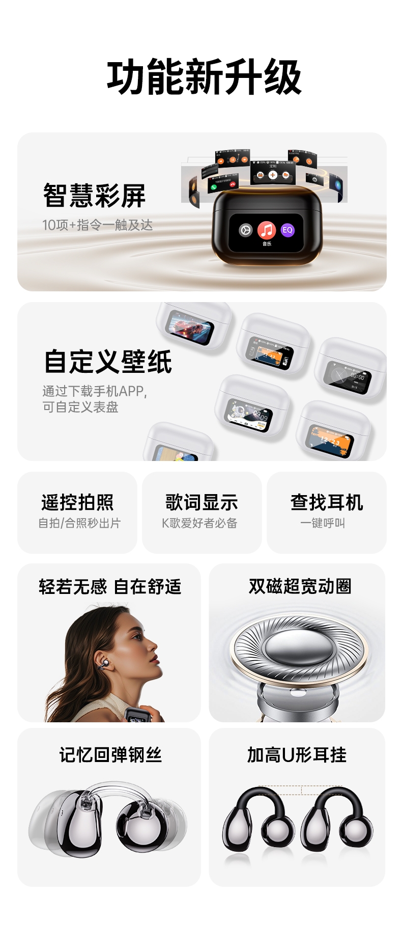 触控彩屏;耳夹式蓝牙耳机;无痛佩戴