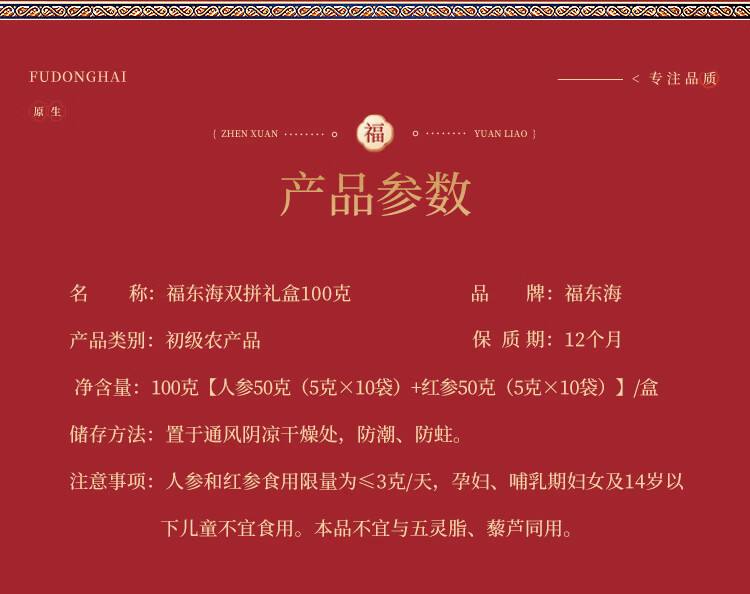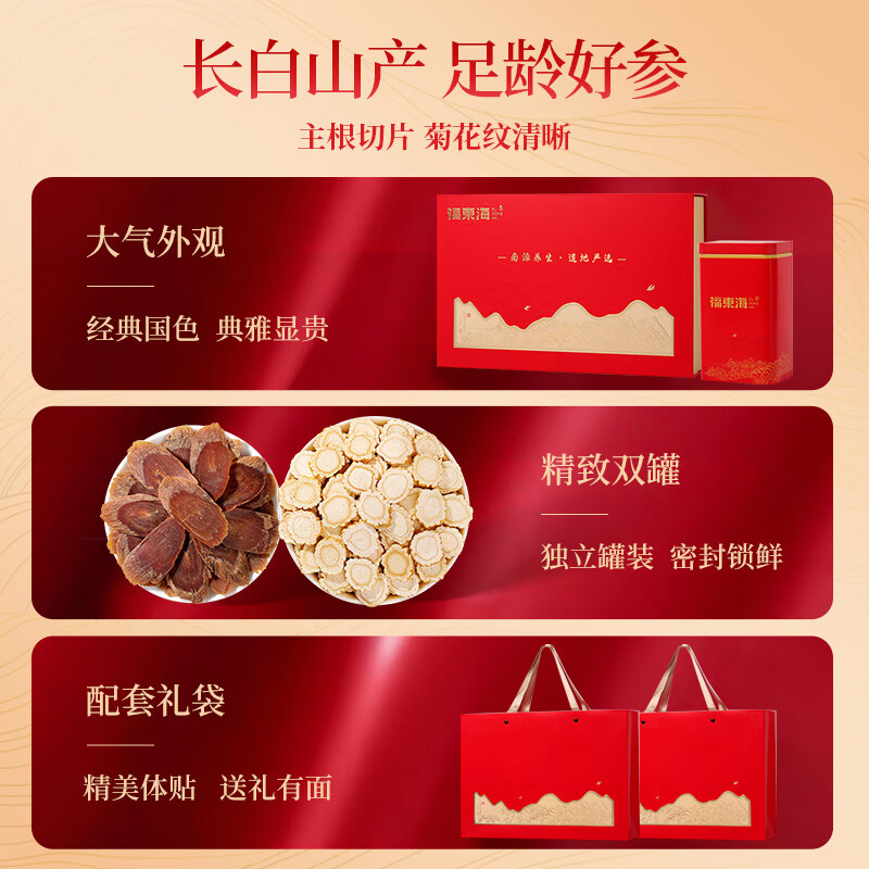 配置:人参50克(5克×10袋)+红参50克(5克×10袋)】/盒