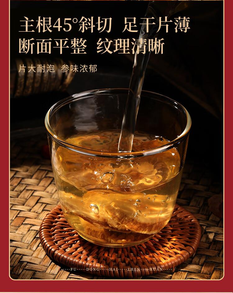 精选中段精华部分;皂苷丰富参味浓郁;颗粒饱满 自然草木香