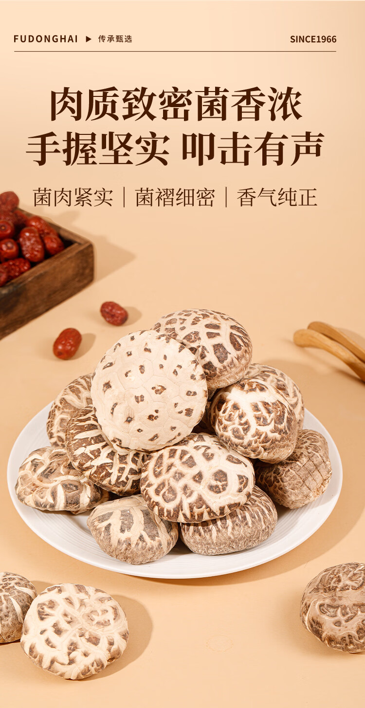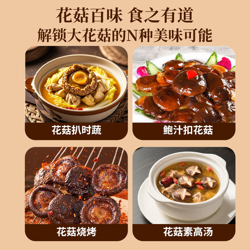 干燥适宜更易储存,开袋散发自然清香;肉质致密菌香浓;营养丰富