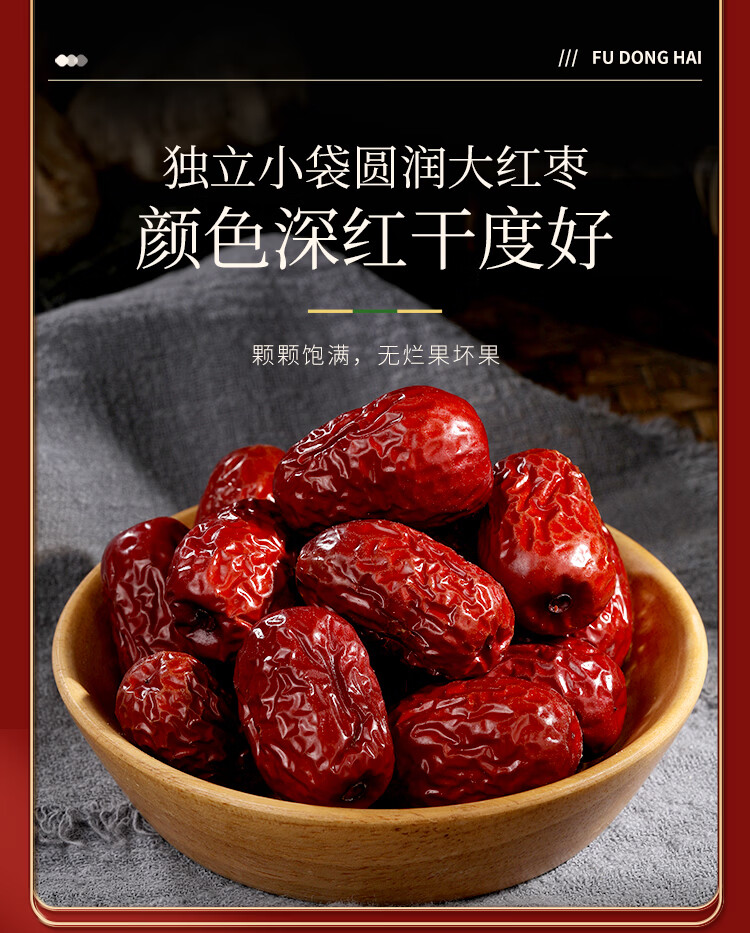肉厚肥美,粗壮厚实;独立小袋圆润大红枣;营养丰富