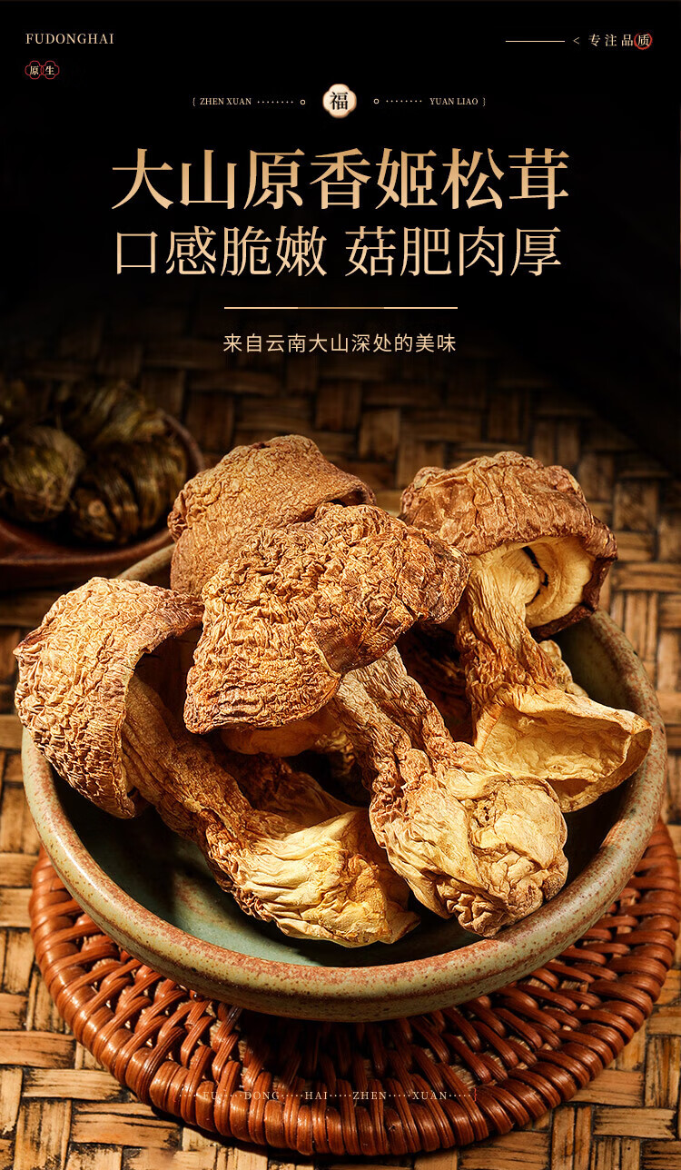颗颗保满完整 ;大山原香姬松茸,口感脆嫩 ,菇肥肉厚;营养丰富
