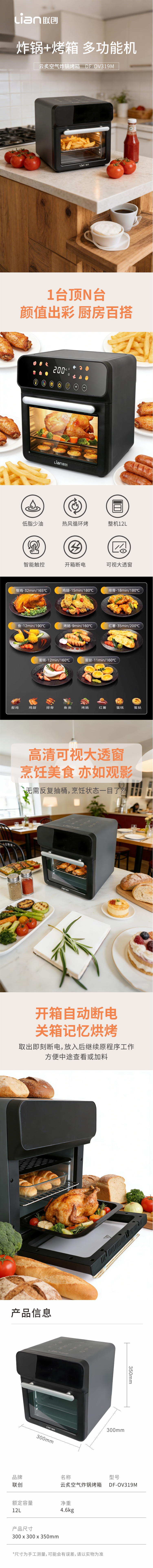 联创 智能空气炸烤箱12LDF-OV319M