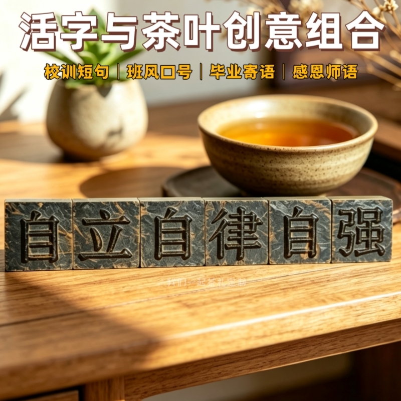 活字与茶叶的创意组合,一字一茶以字表意;高山料有趣茶,茶汤橙黄入口醇厚回甘;专属定制,让员工/客户感受到独一无二的心意