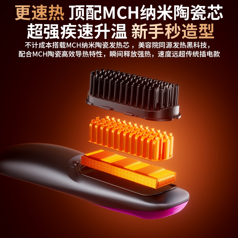权尚 负离子无线直发梳戴森紫ZF001