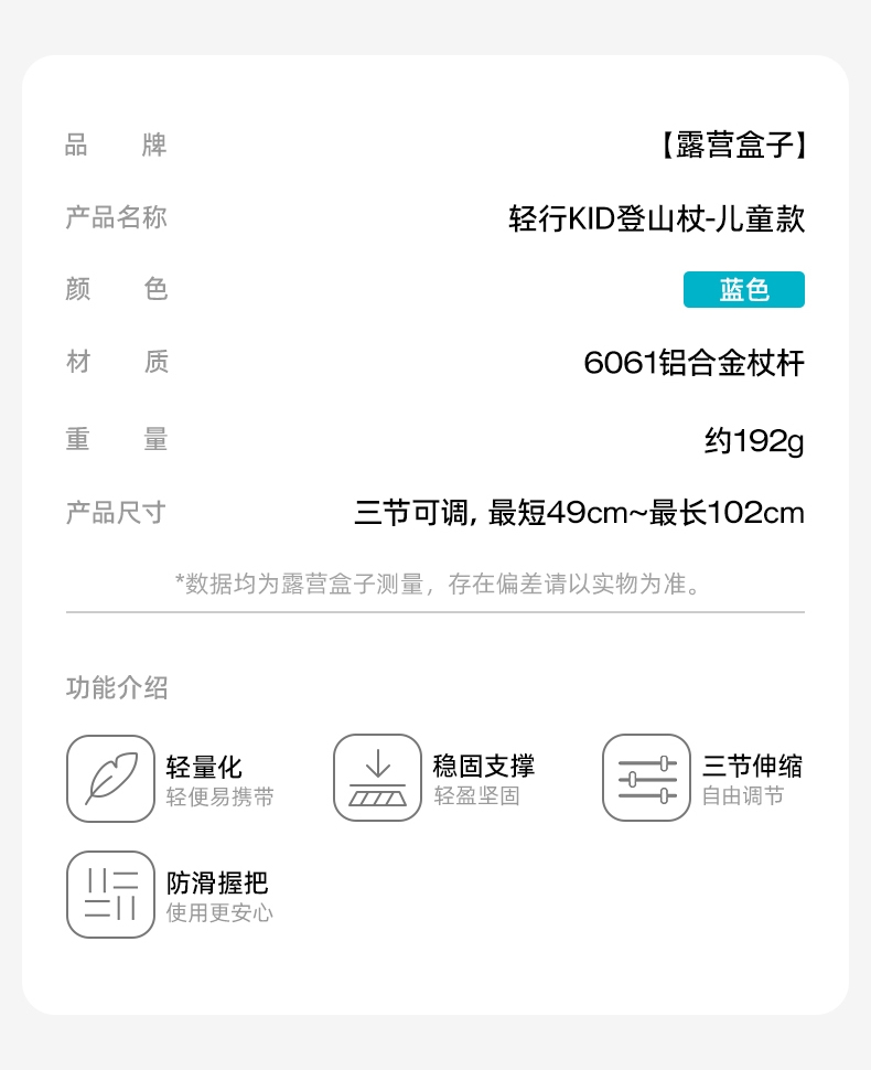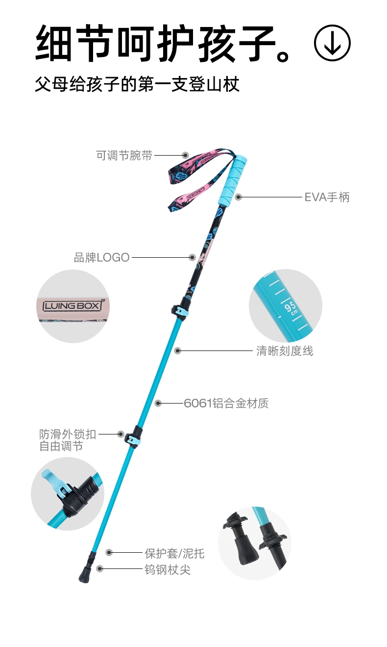 LUING BOX 轻行KID登山杖儿童款蓝色LB20251230A