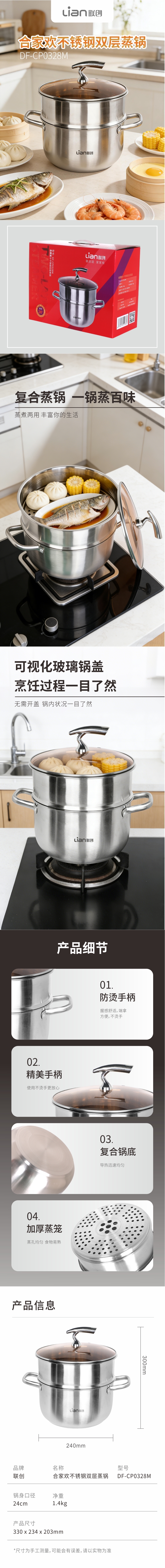 联创 合家欢不锈钢双层蒸锅6LDF-CP0328M
