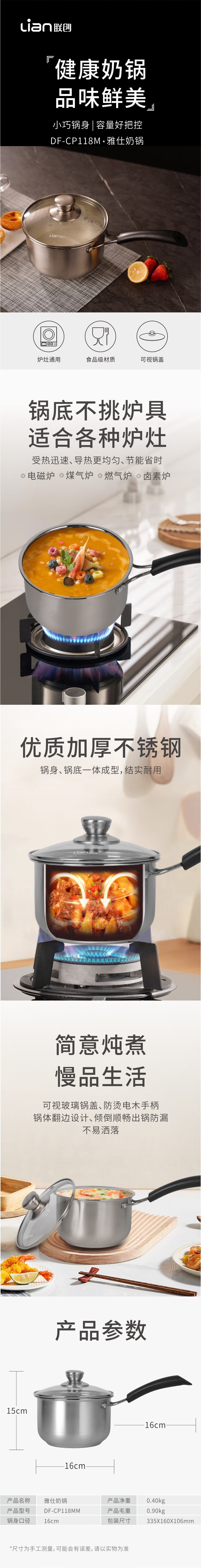 联创 家用雅仕奶锅16cmDF-CP118M