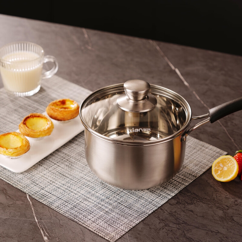 优质加厚不锈钢,锅身、锅底一体成型,结实耐用;可视玻璃锅盖、防烫电木手柄,防溢锅沿,导热锅底;锅体翻边设计,倾倒顺畅出锅防漏,不易洒落