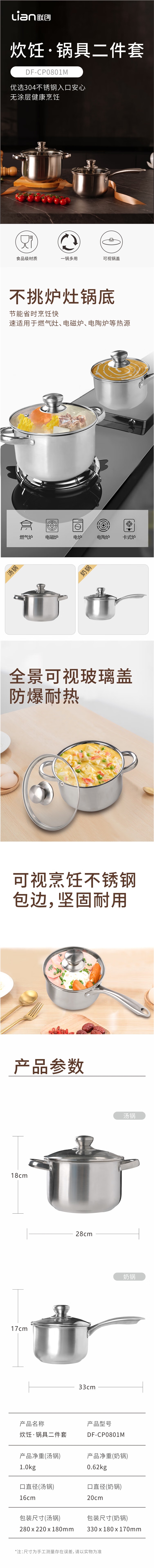 联创 炊饪锅具奶锅汤锅二件套DF-CP0801M