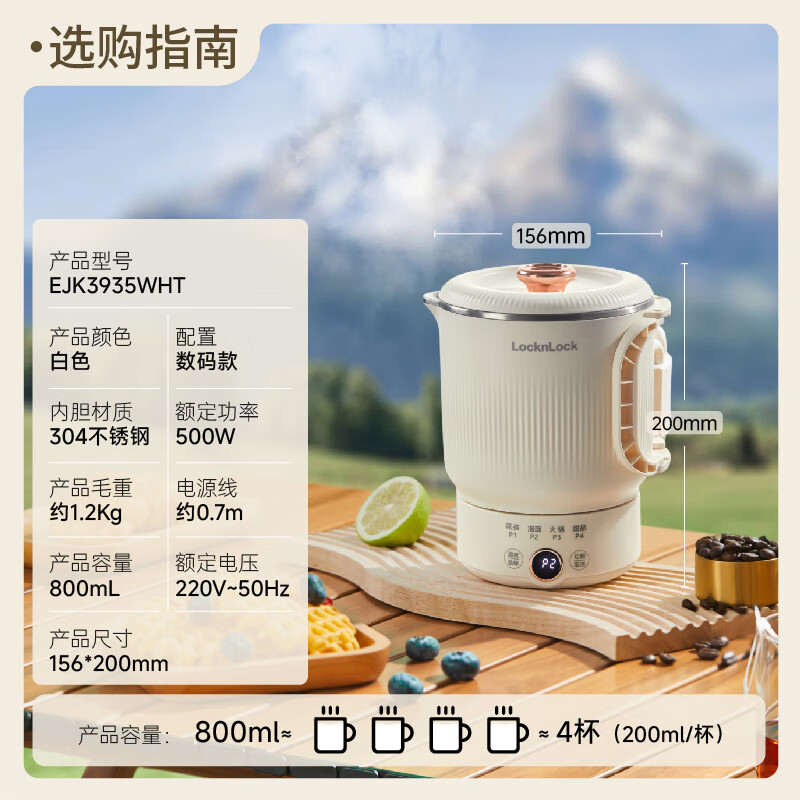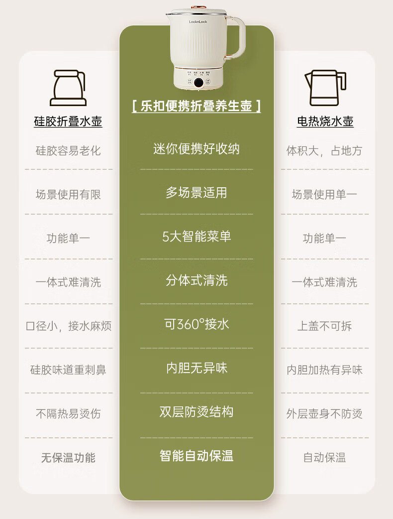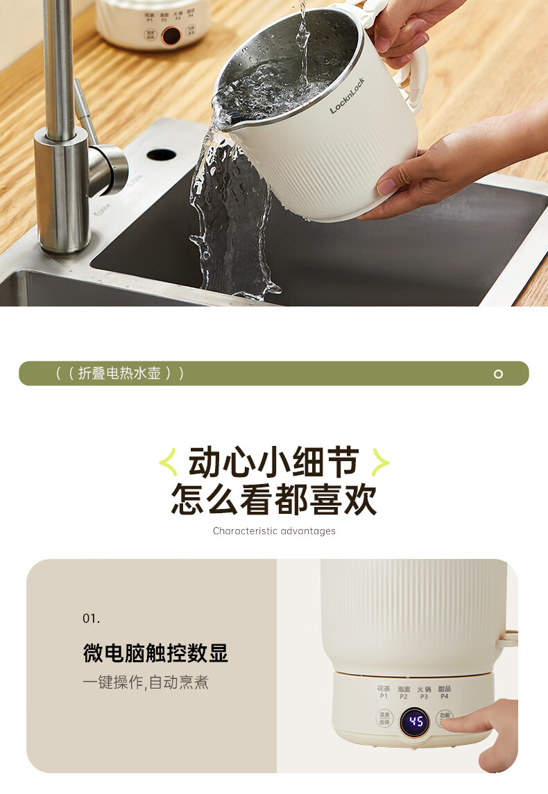 乐扣乐扣 便携式折叠热水壶0.8LEJK3935WHT