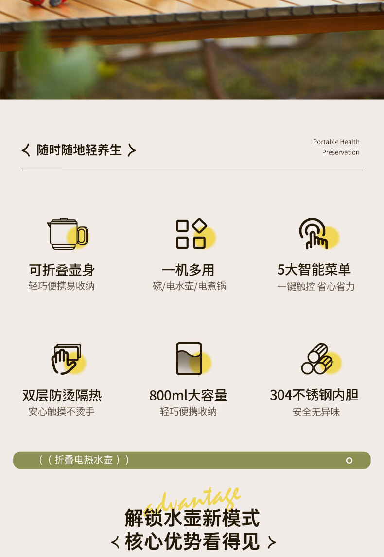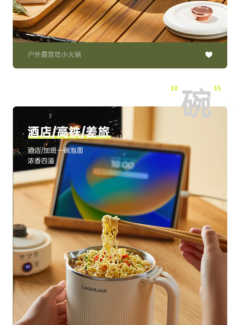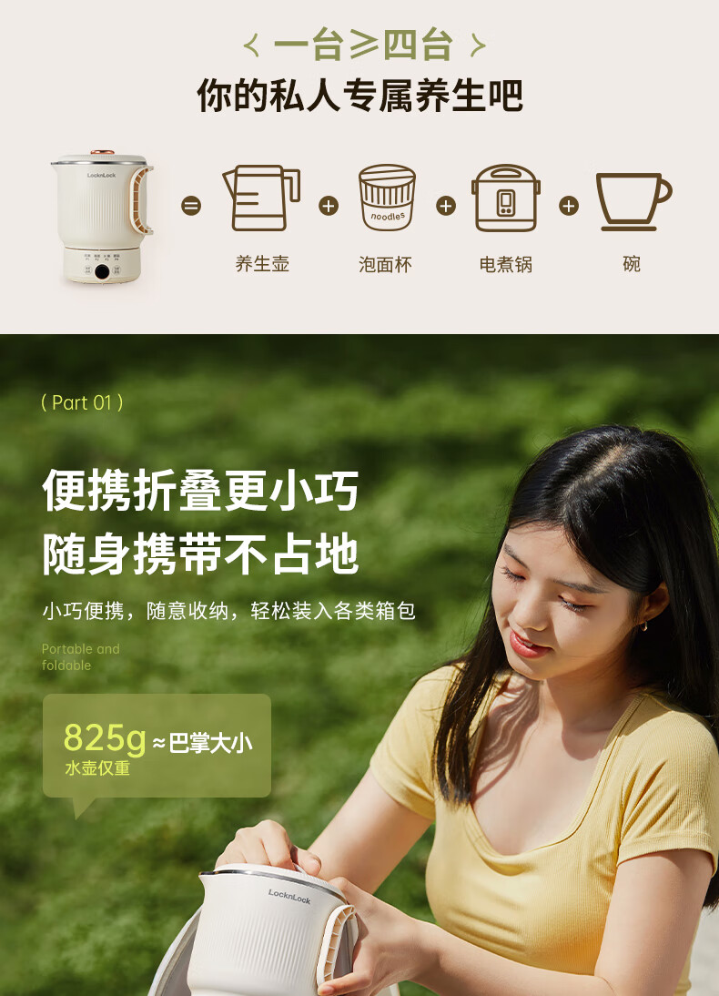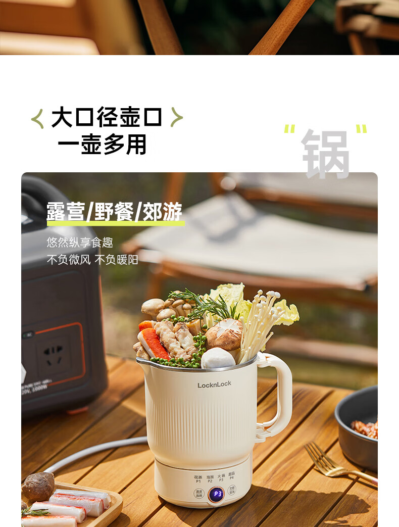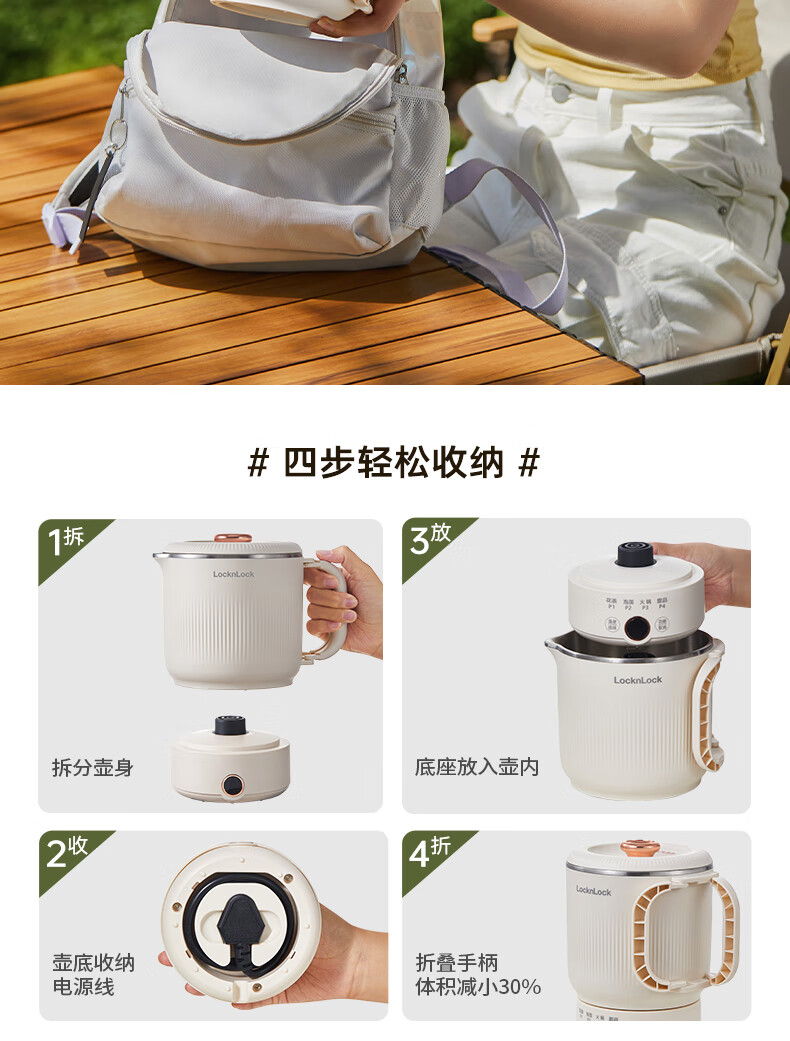 可拆卸后折叠收纳;是烧水壶,也是小煮锅,还是即食碗;大口径轻松放入整块泡面,为旅途补充元气