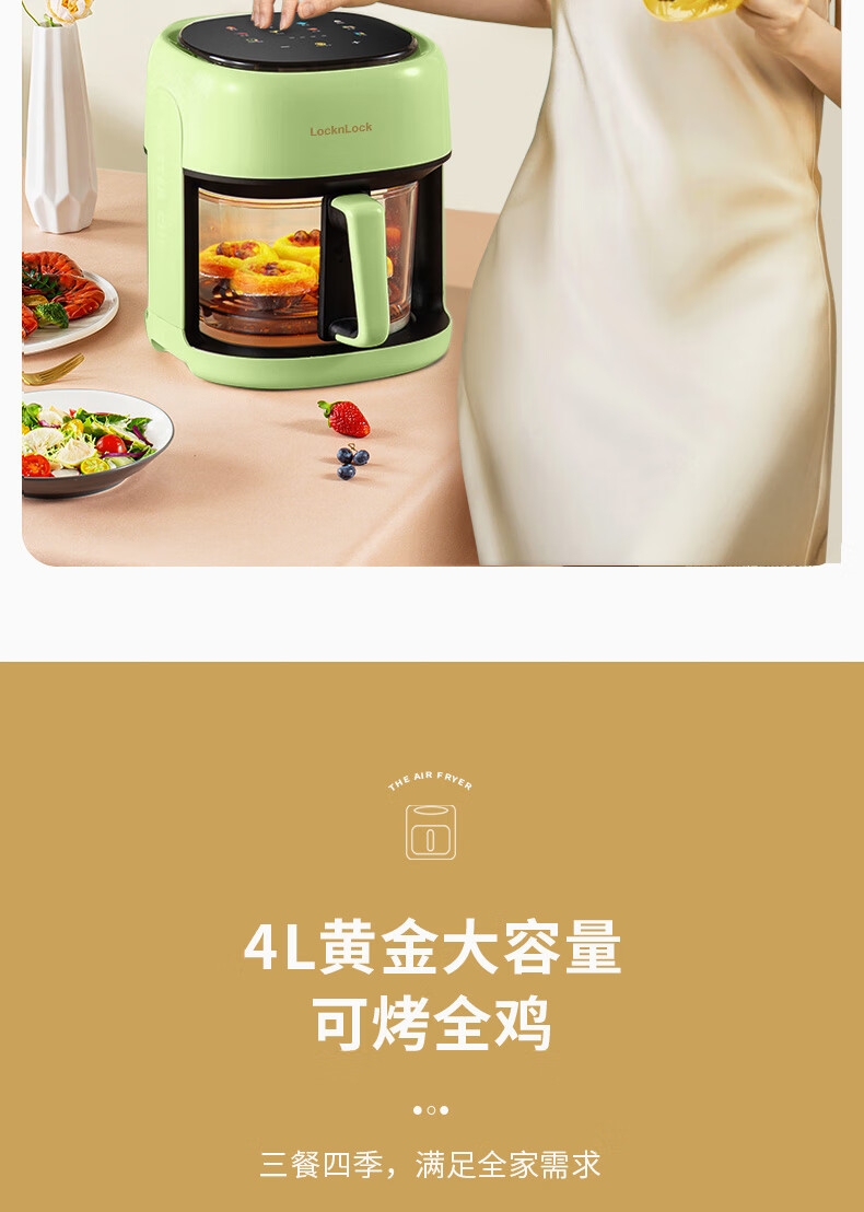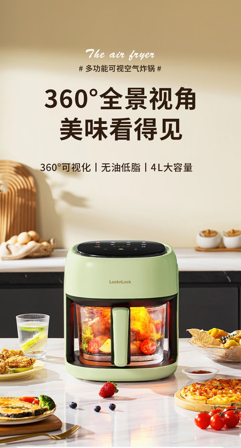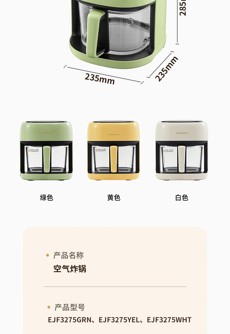 乐扣乐扣 可视化空气炸锅4LEJF3275GRN/ EJF3275YEL