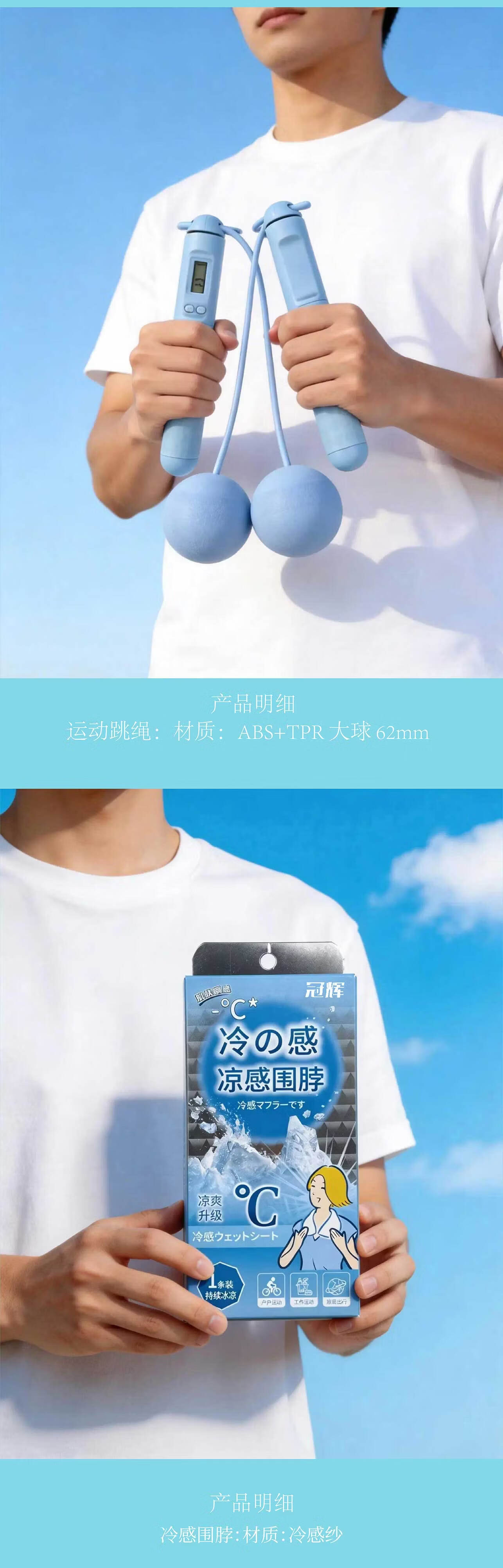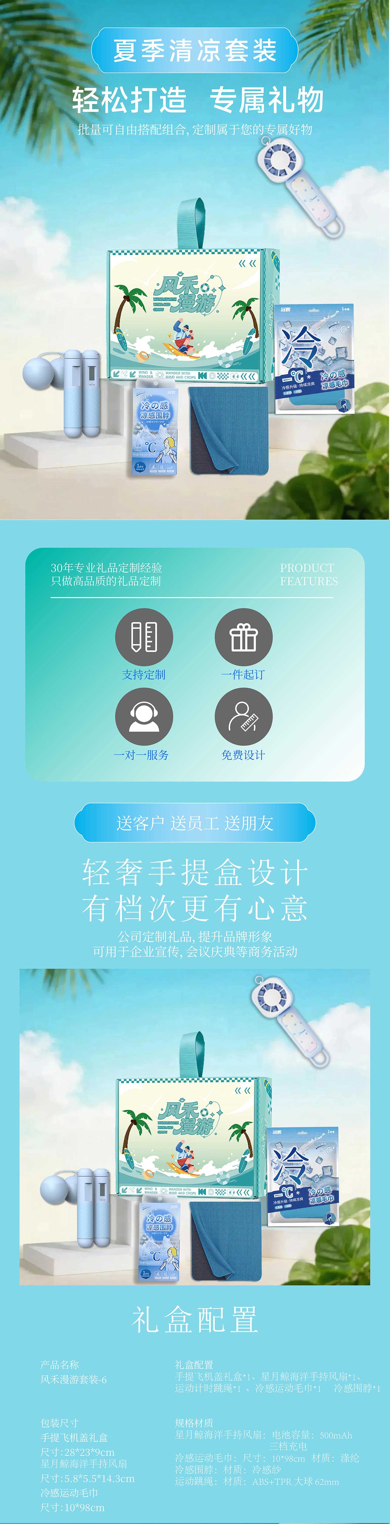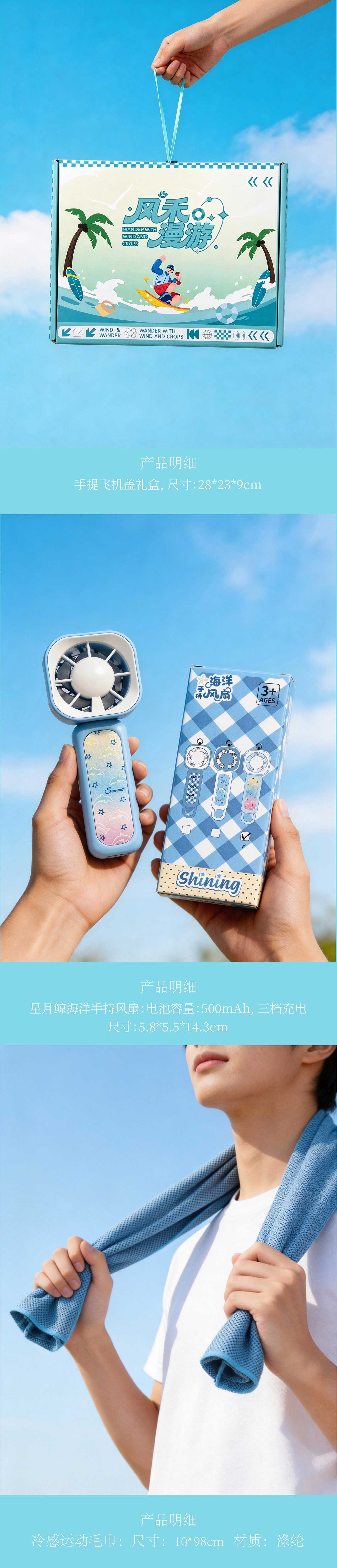 礼盒配置:手提飞机盖礼盒*1、星月鲸海洋手持风扇*1 运动计时跳绳*1 冷感运动毛巾*1 冷感围脖*1