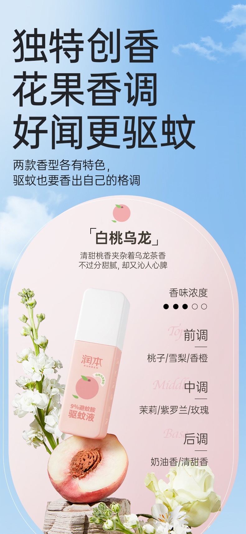 产品风量五档可调,风力强劲,携带方便;润本避蚊胺驱蚊液:75ml,9%避蚊胺;儿紫草修护膏: 薄荷型20g,紫草根提取物