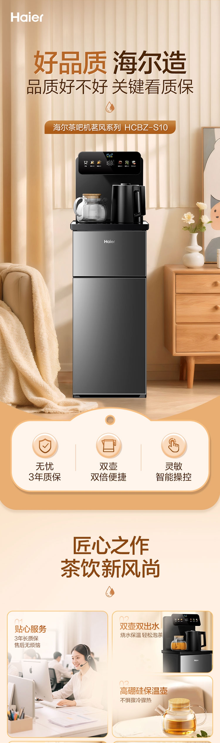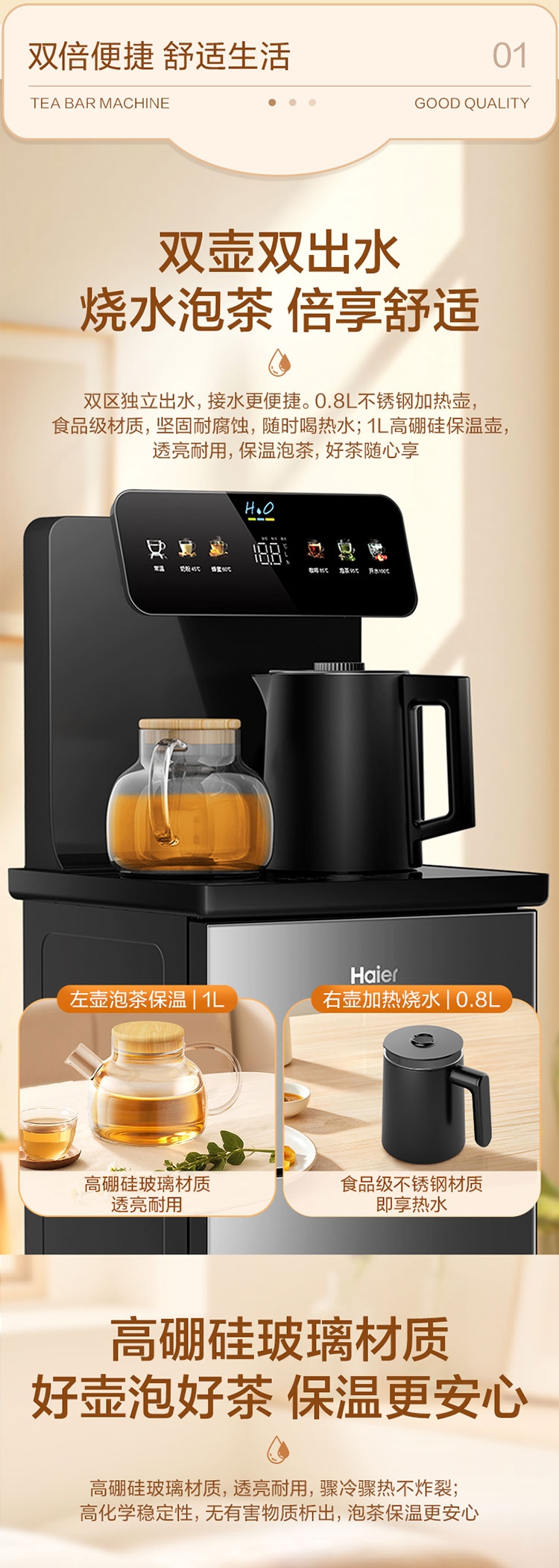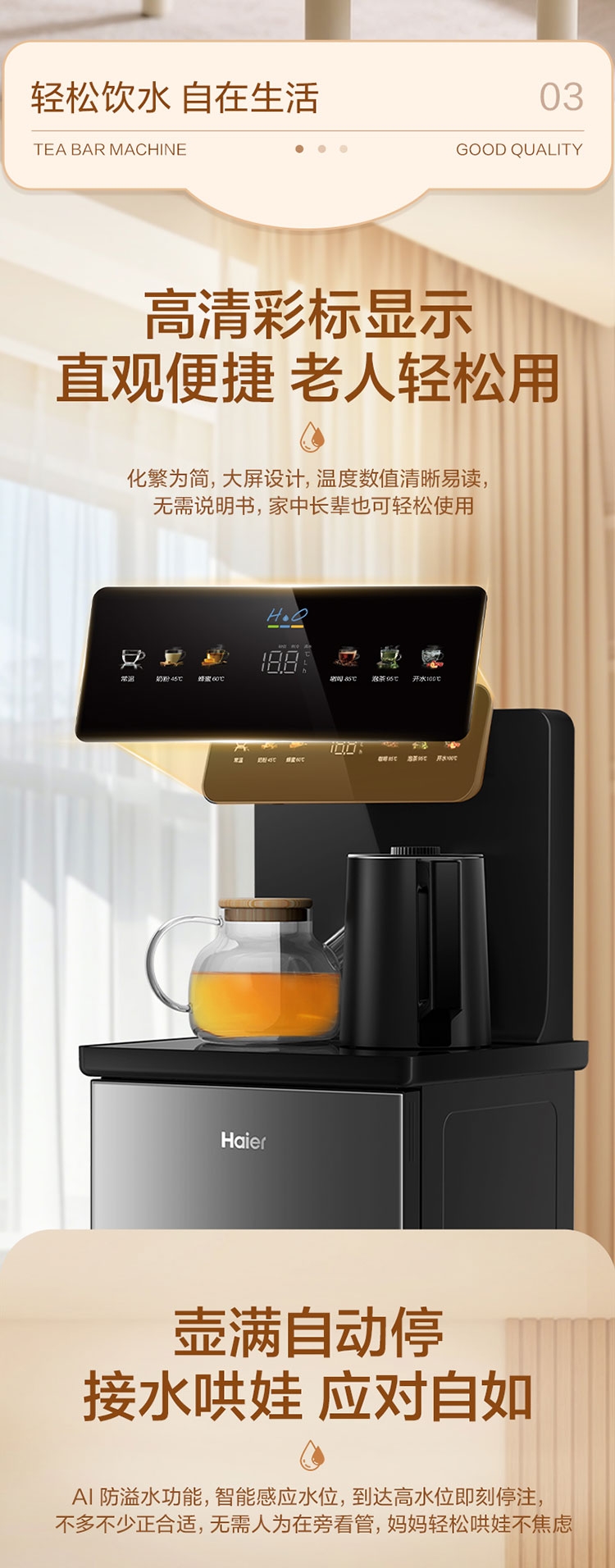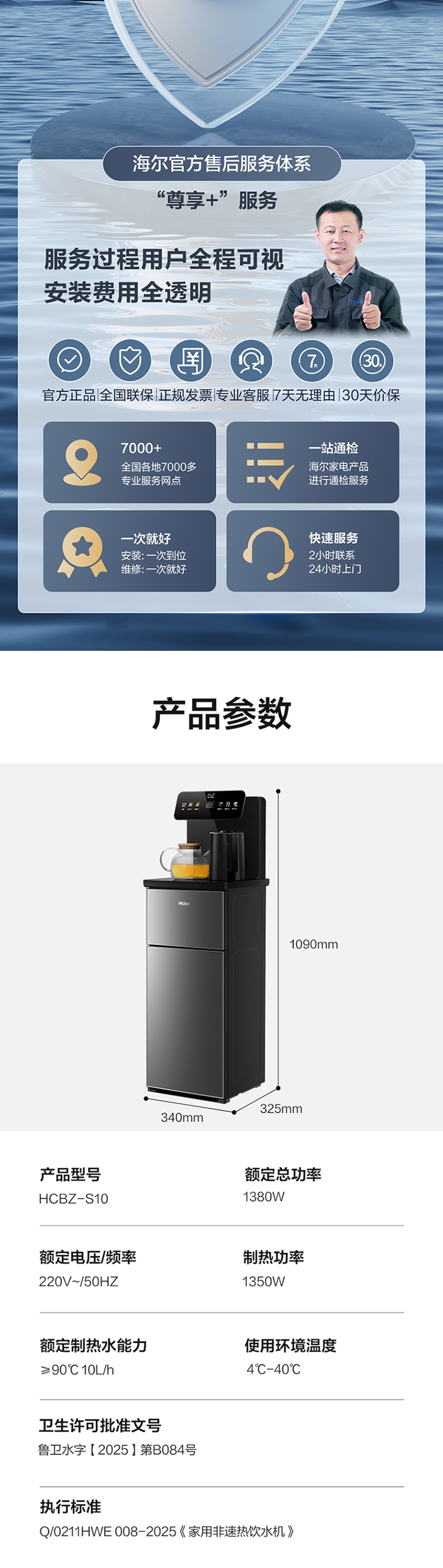 高效速热10L/h热茶待客免久等;高清彩标显示温度清晰操作流畅;模式自由选多段水温可调