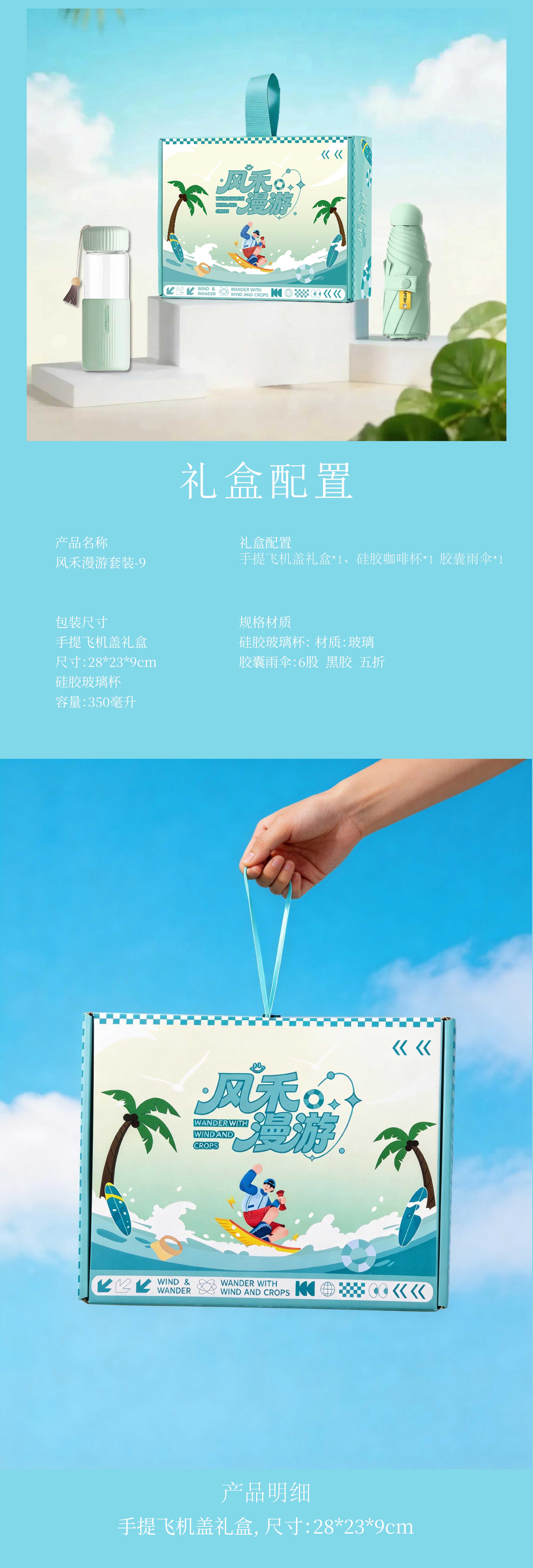 礼盒配置:手提飞机盖礼盒*1、玻璃杯*1 胶囊雨伞*1