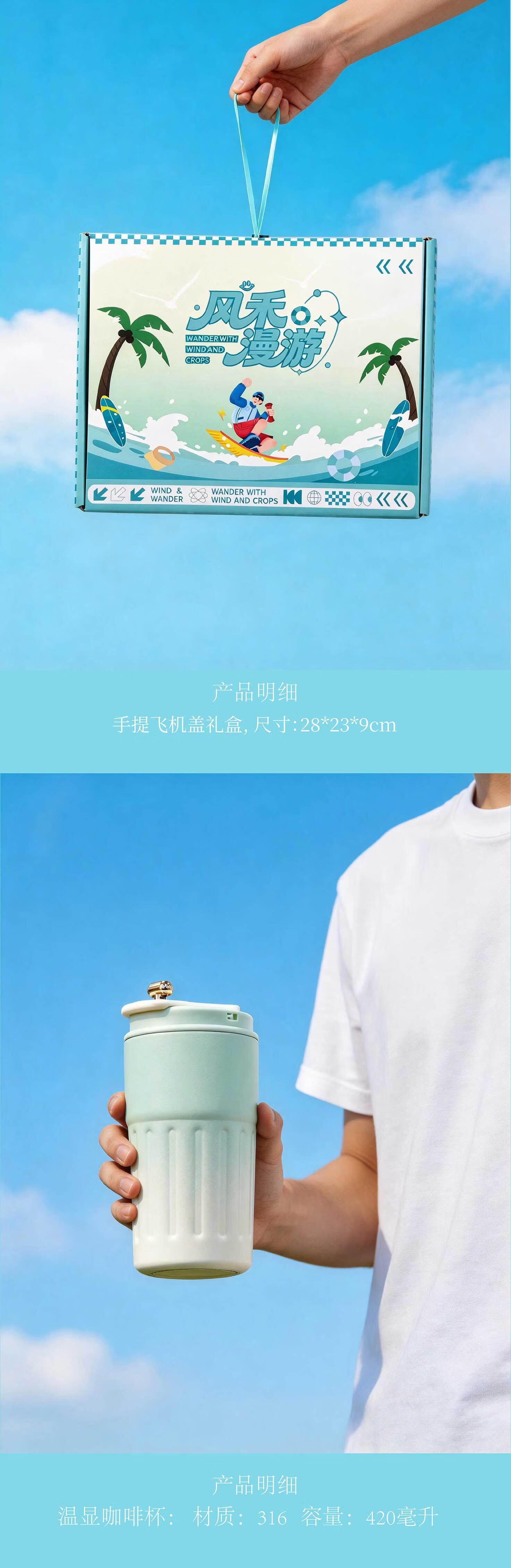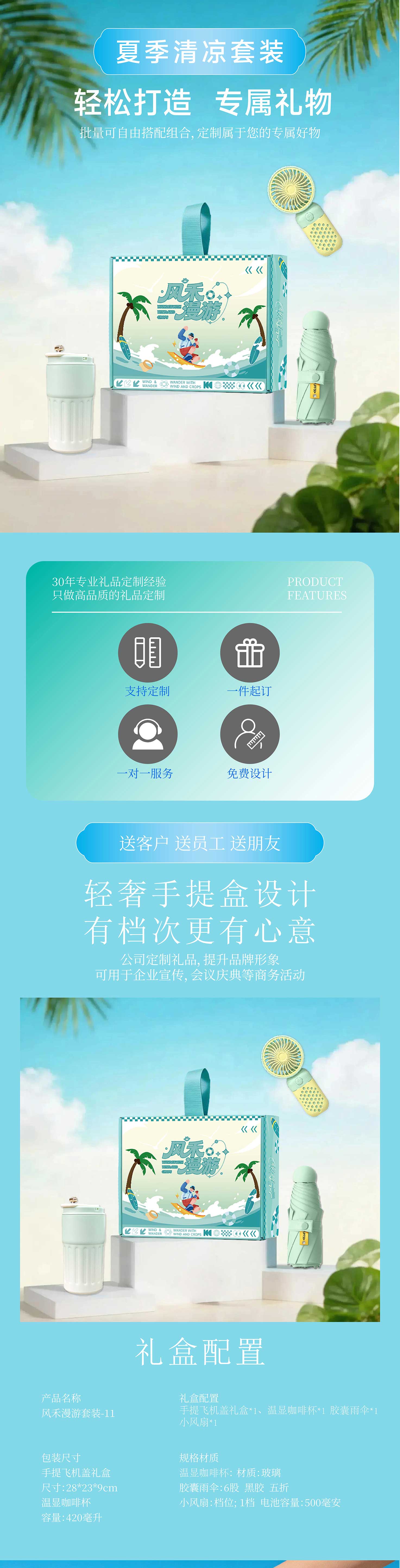 礼盒配置:手提飞机盖礼盒*1、温显咖啡杯*1 胶囊雨伞*1 小风扇*1
