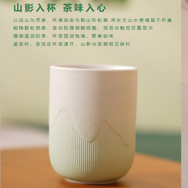 一盒粽子,是端午的仪式;一盏茶杯,是日常的清欢;以远山为灵感,杯身渐变勾勒山形轮廓,将东方山水意境;让非遗不再是博物馆里的陈列 而是能握在手里