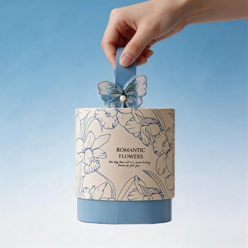 规格材质:蓝色蝴蝶礼盒 材质:圆通纸盒 尺寸:13*13*11