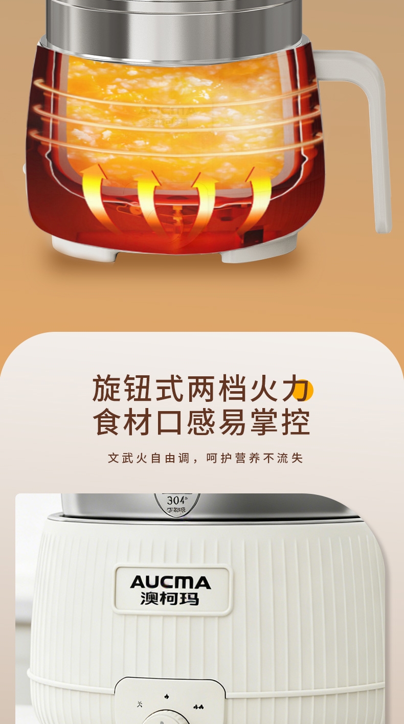 旋钮式两档火力食材口感易掌控;双重跳断保护轻松无需时刻盯守;产品采用防烫把手,操作快捷,双层锅体,隔热更耐用