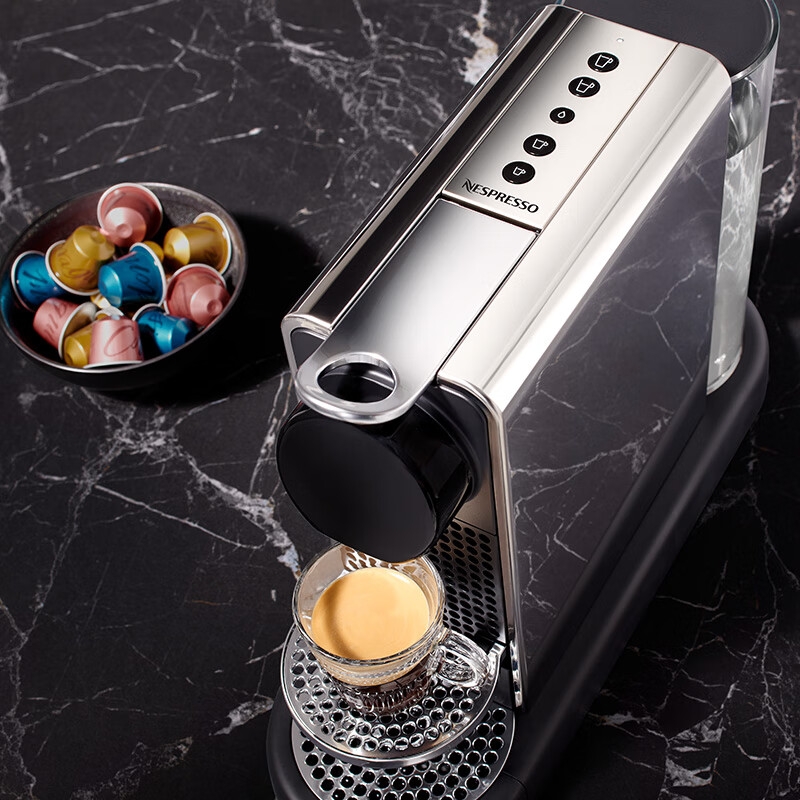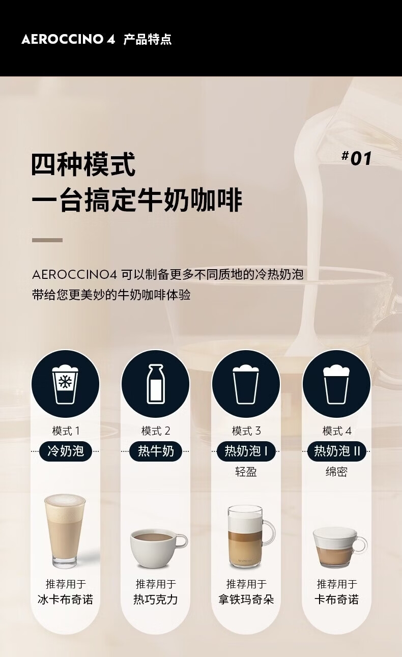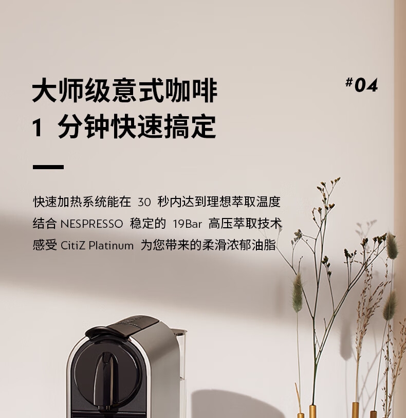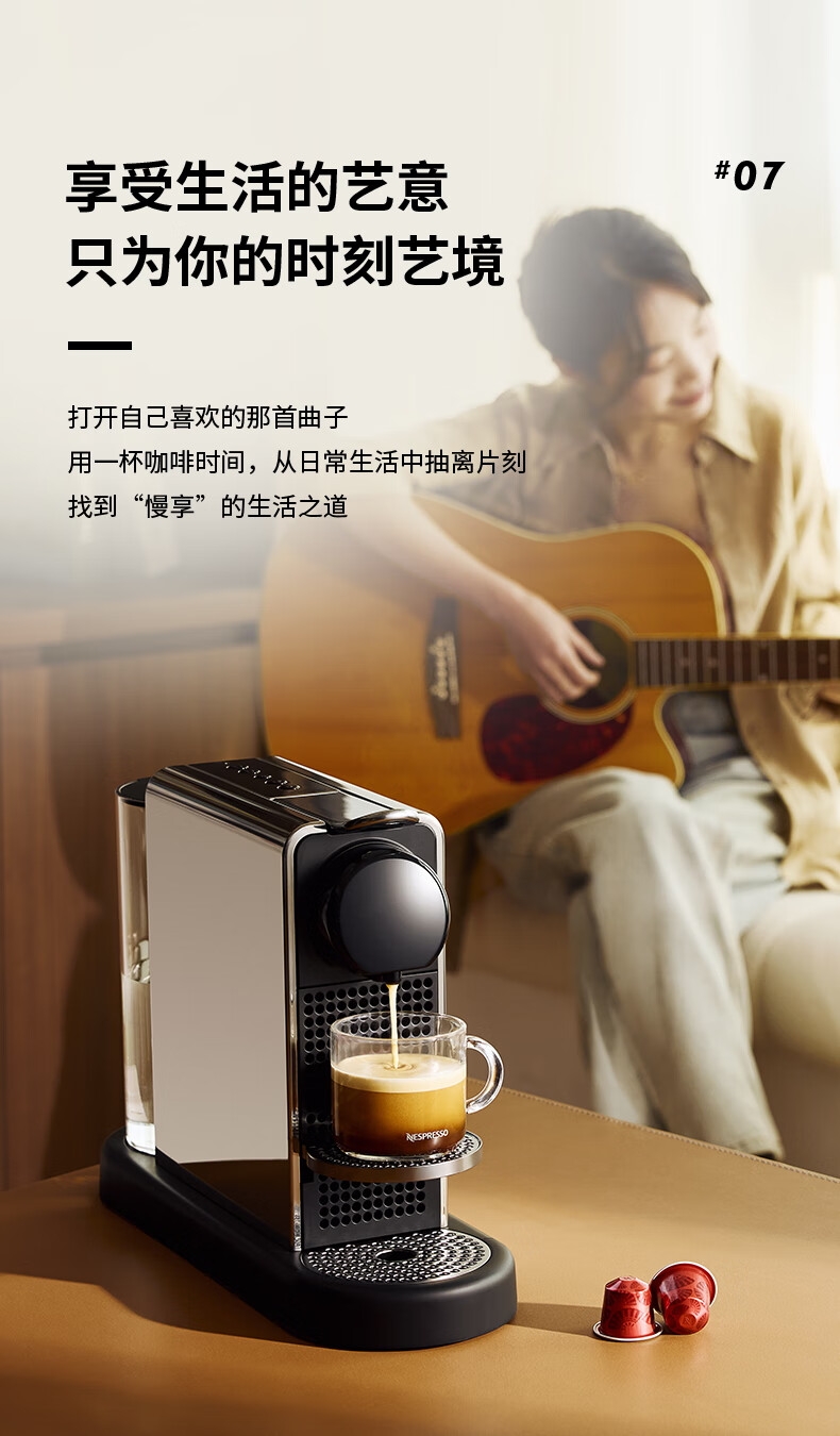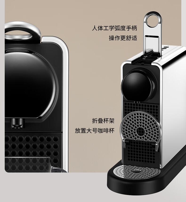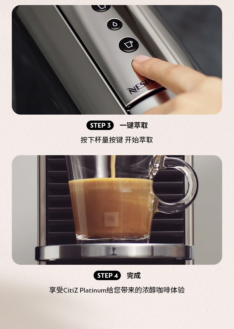 摩登时尚,一键美式;小巧便携,机身流畅;咖啡浓醇,油脂丰富,操作便捷