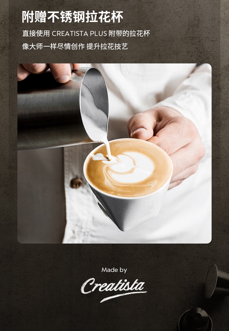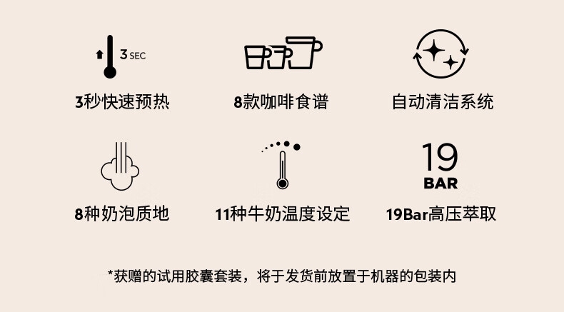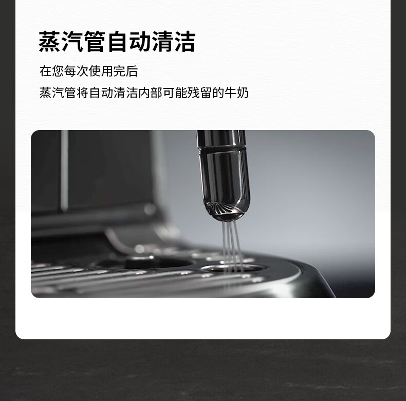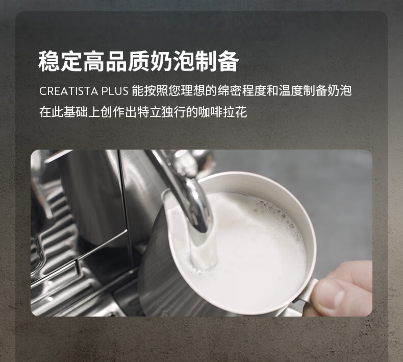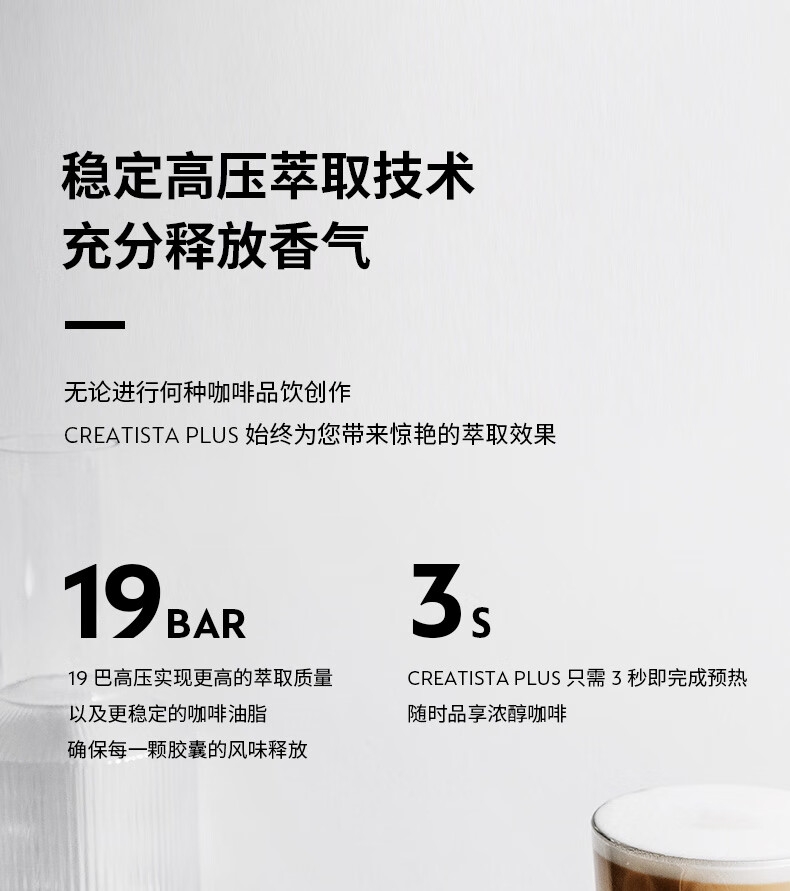 花式奶泡8种配方大容量水箱一体自动清洁;稳定高压萃取,充分释放香气;功能强大,一键搞定