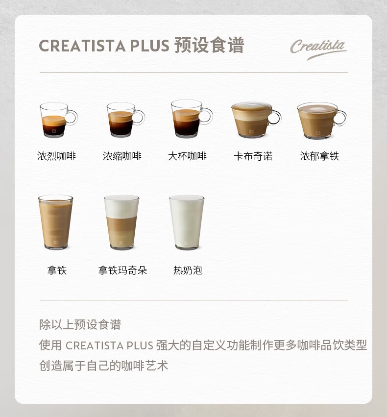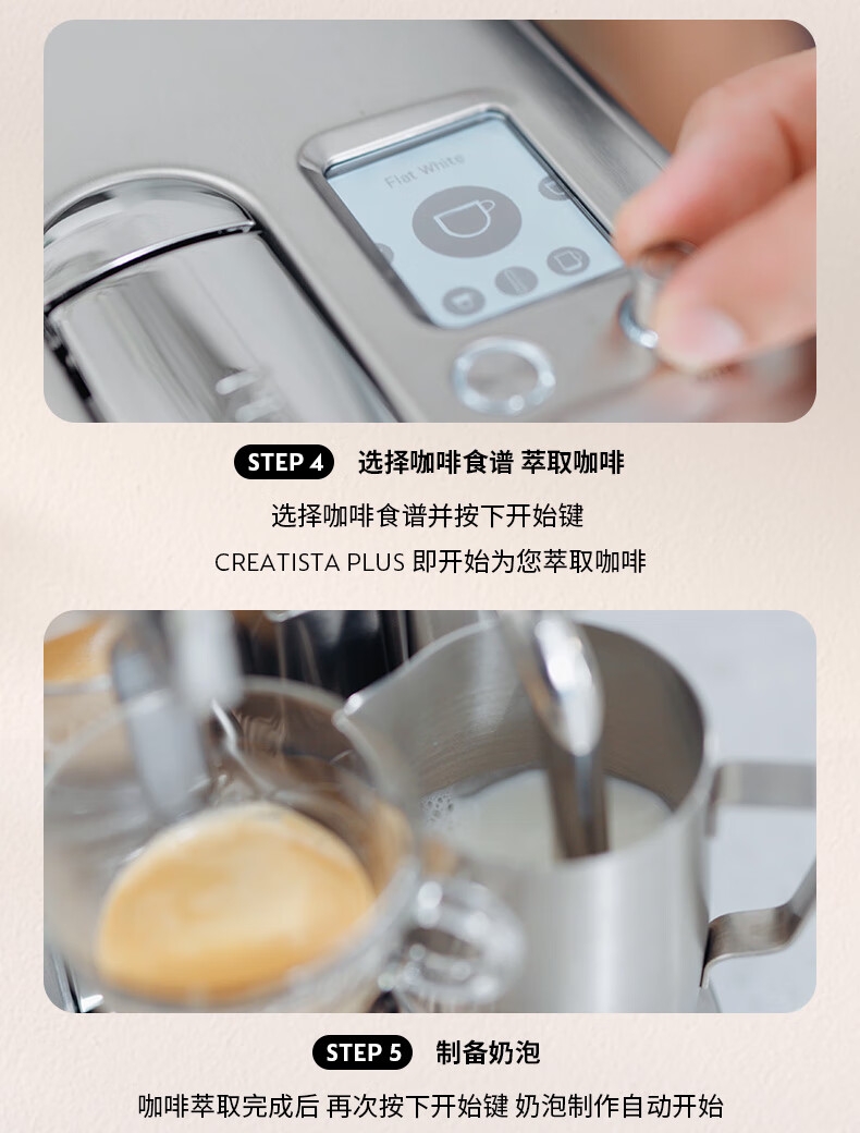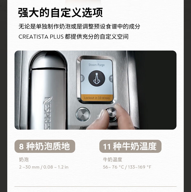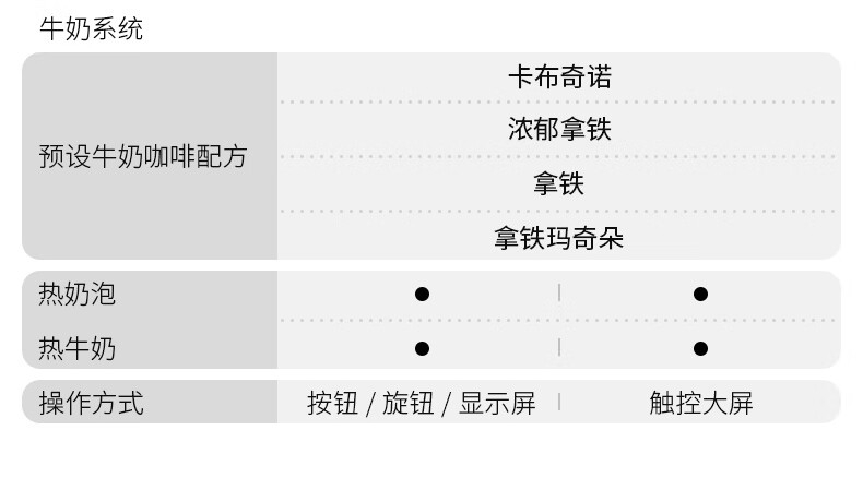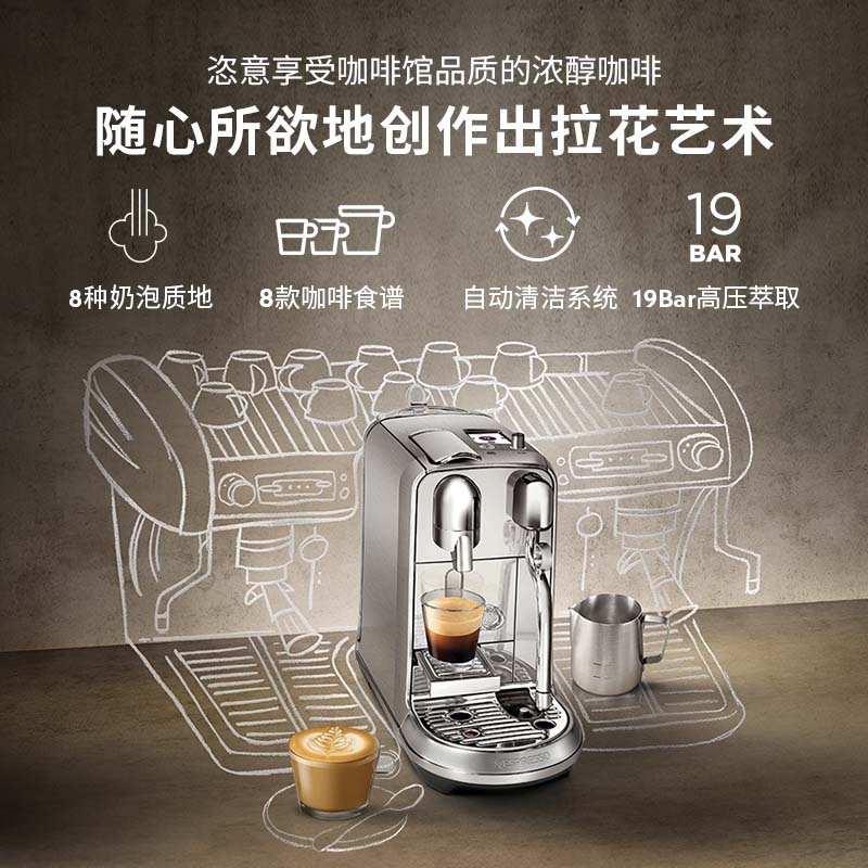 花式奶泡8种配方大容量水箱一体自动清洁;稳定高压萃取,充分释放香气;功能强大,一键搞定