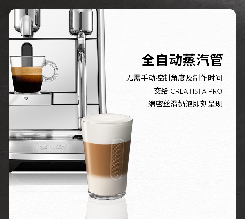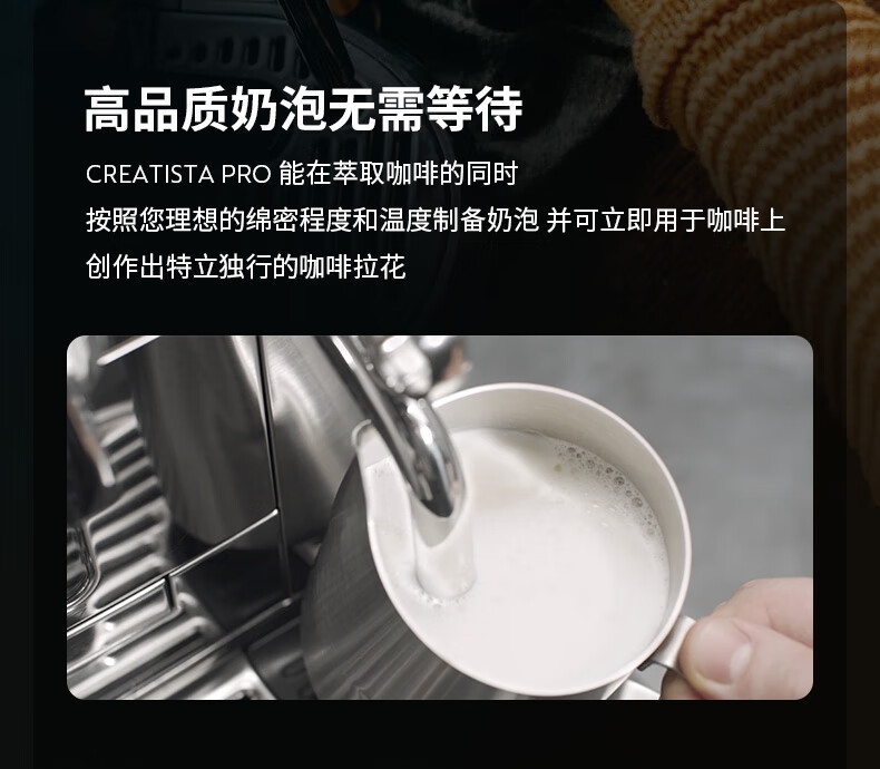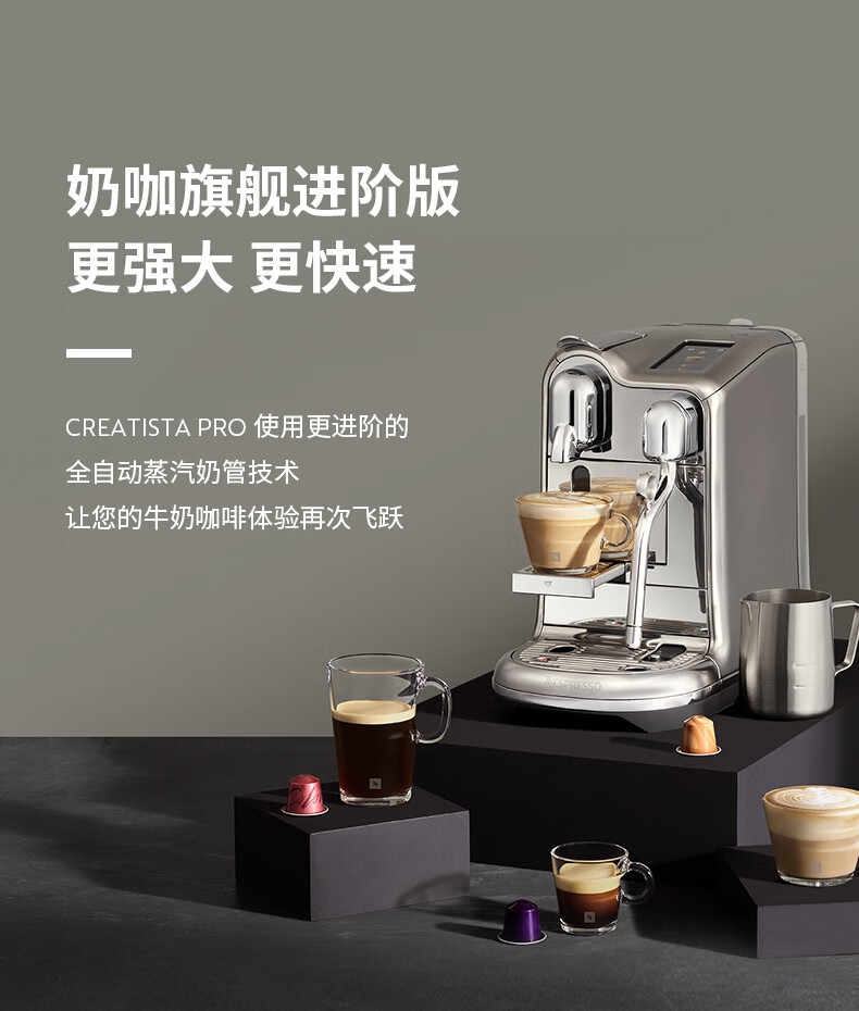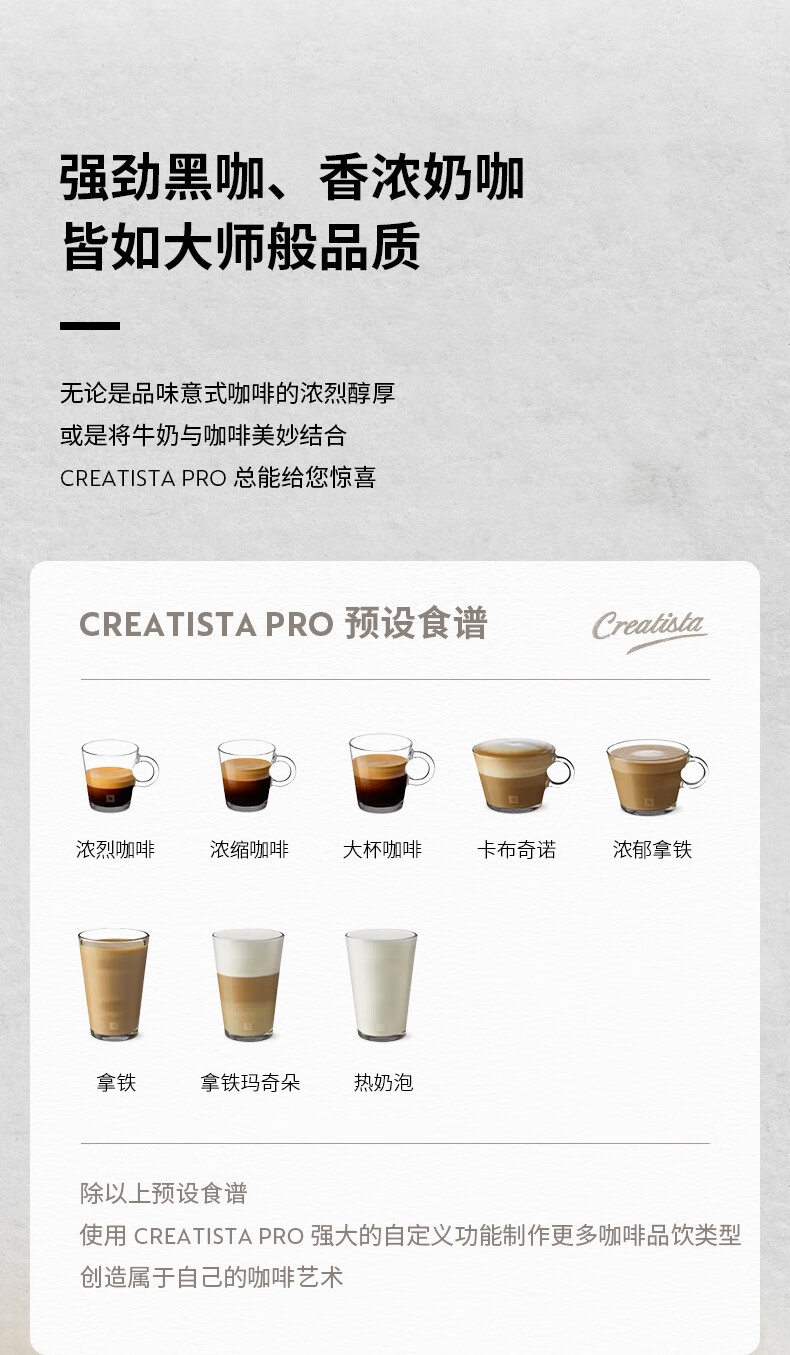 花式奶泡8种配方;大容量水箱一体自动清洁;奶咖旗舰进阶版,更强大,更快捷