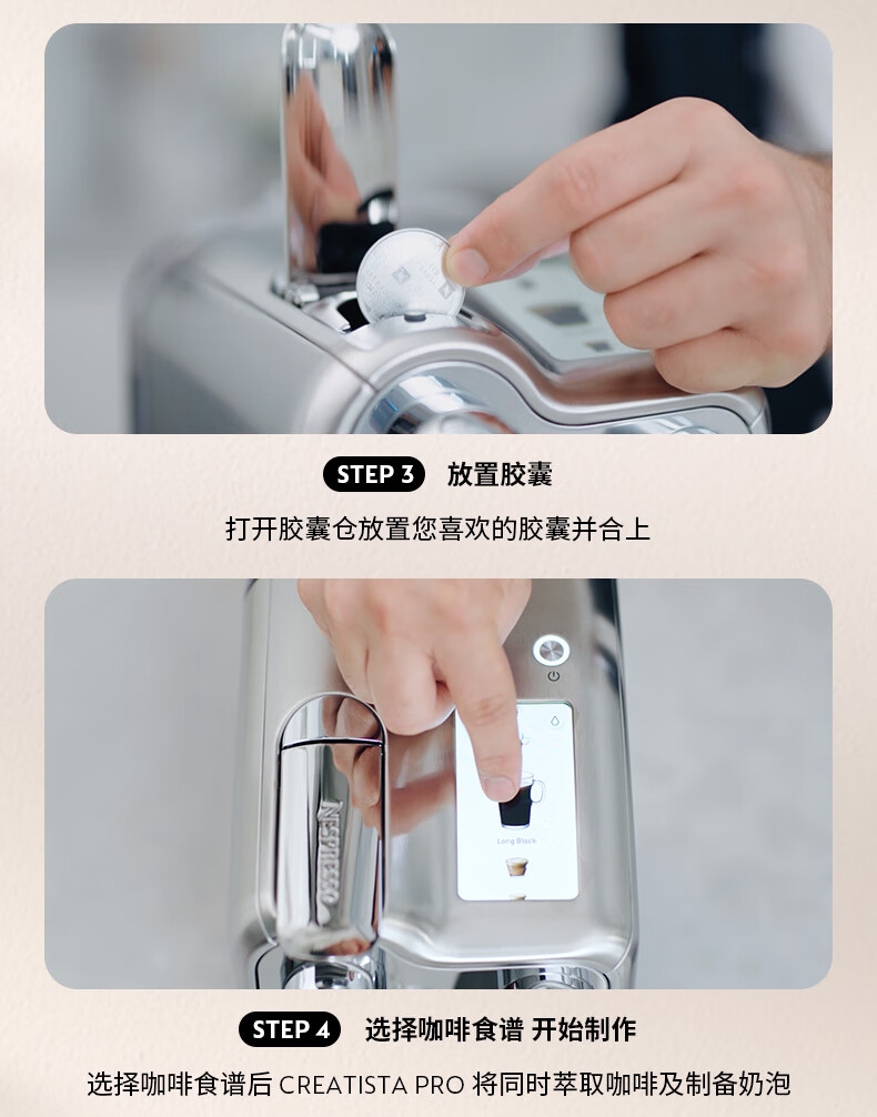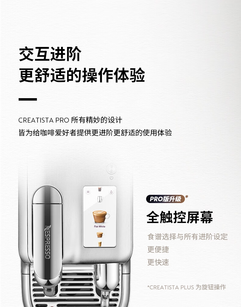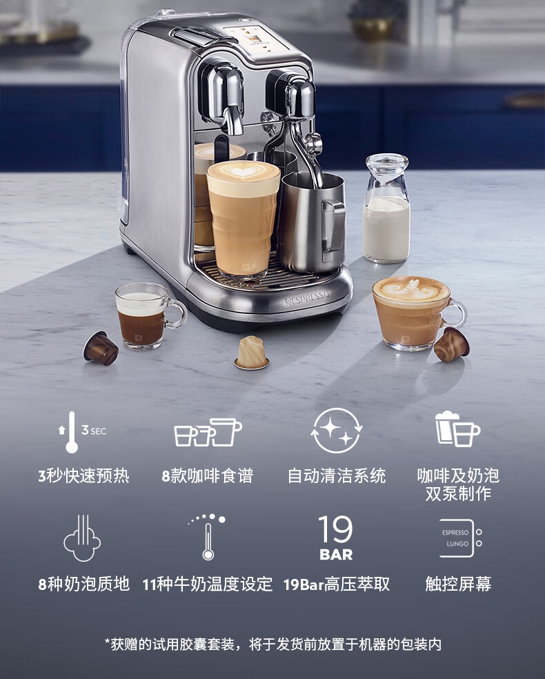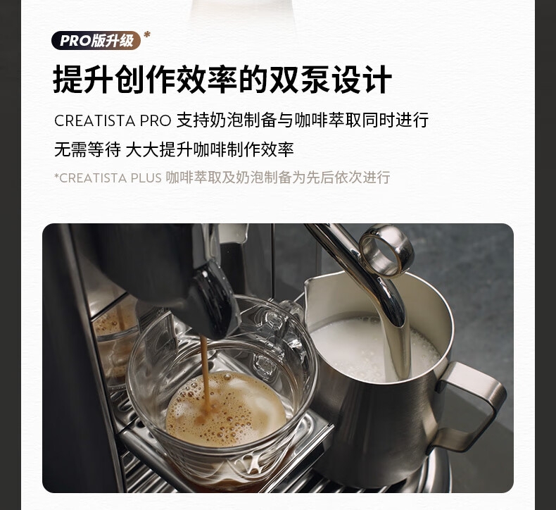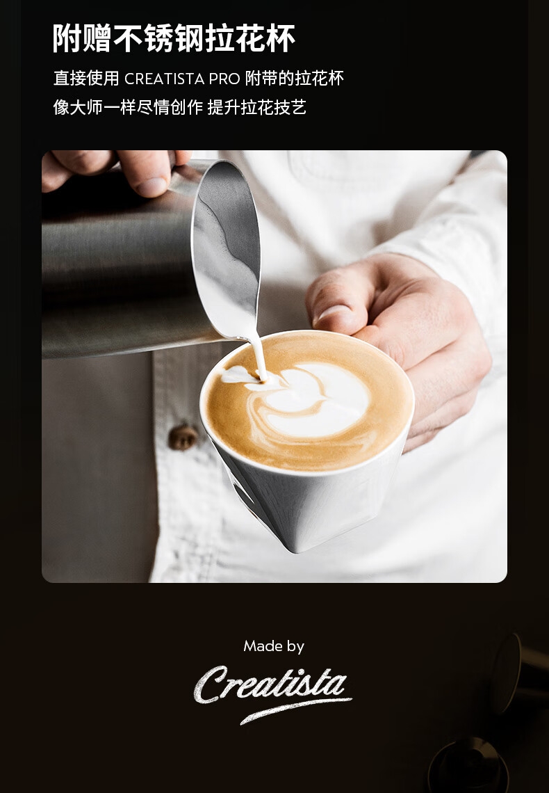花式奶泡8种配方;大容量水箱一体自动清洁;奶咖旗舰进阶版,更强大,更快捷
