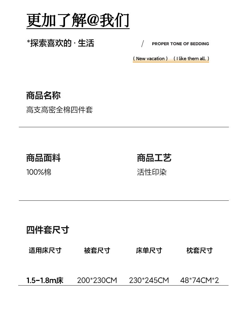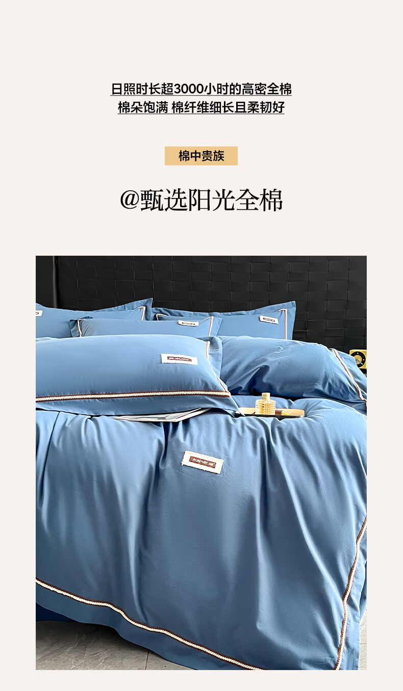 全棉高支密整体奢华感与仪式感并存;空间质感瞬间升级 不经意间彰显出主人的优雅;品质期待与你共赴一场生活美学之约