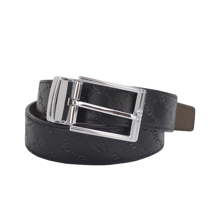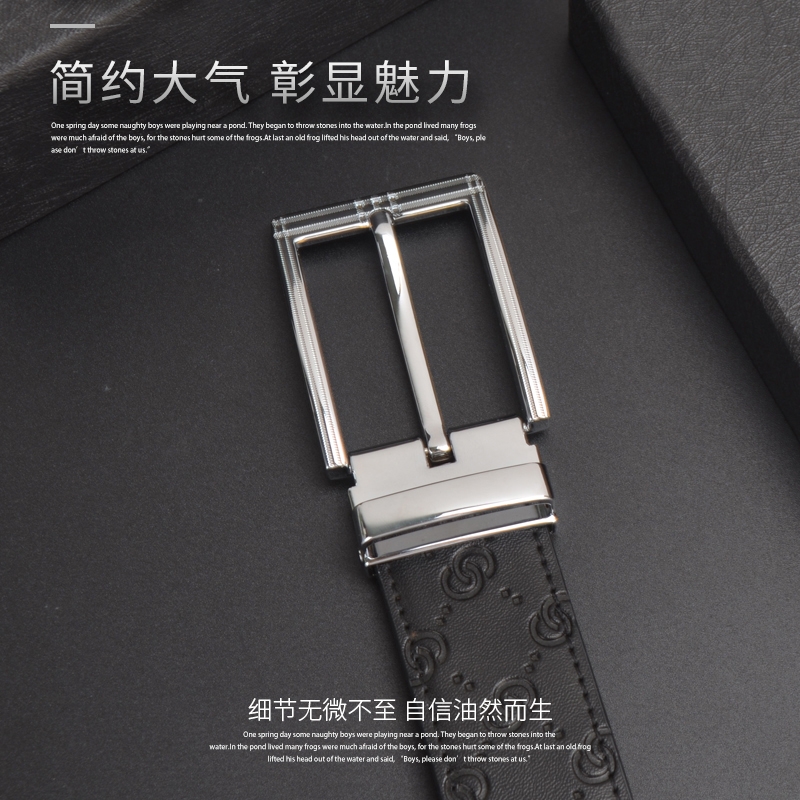 锌合金五金扣头,真空电镀工艺;带身采用二层牛皮,带身面压花, 油边+车线工艺;走线工整,无缝连接、构想更增添立体感