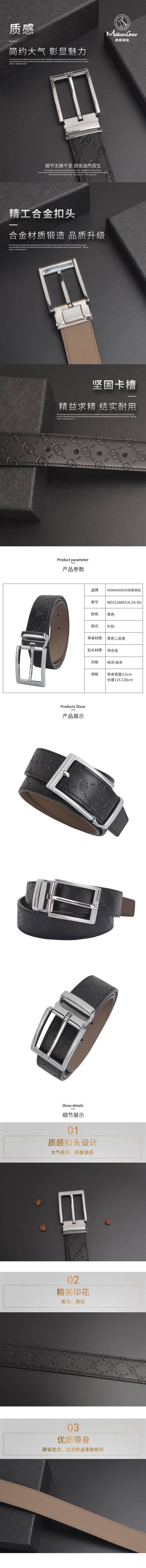 美都袋鼠 男士针扣皮带MD313AM314-ZA-M1