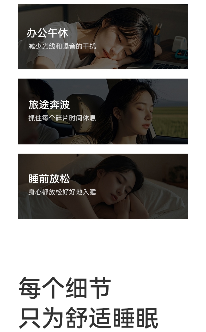 适用场景:夜间睡眠、午休、旅行、办公室小憩
