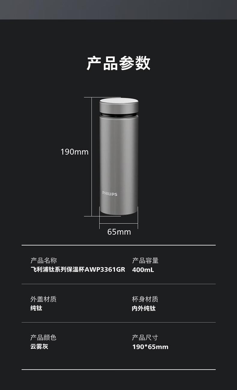 飞利浦 纯钛保温杯400mlAWP3361GR