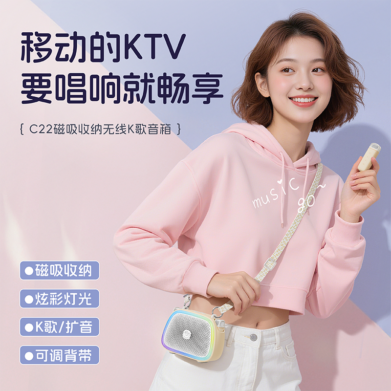 万吾 磁吸双唛无线K歌蓝牙音箱C22