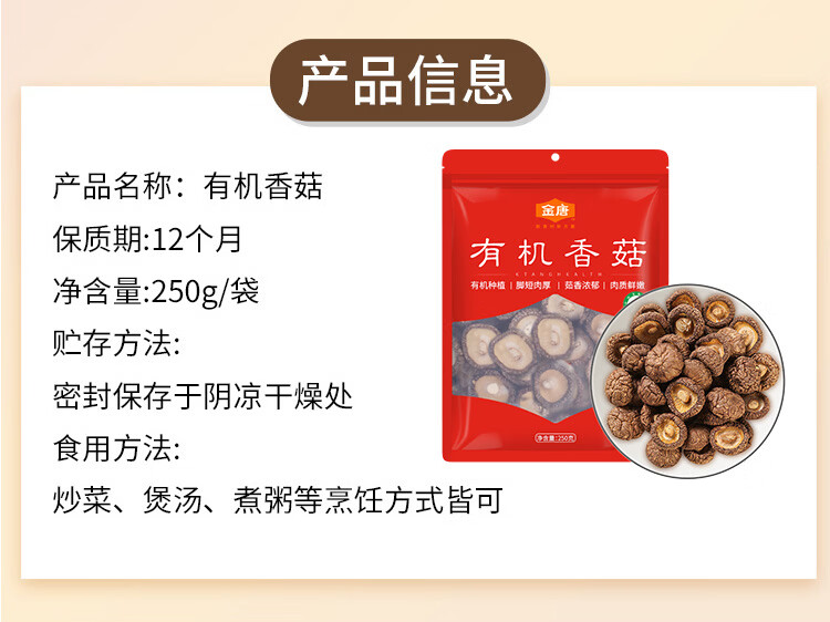 金唐 有机香菇250g