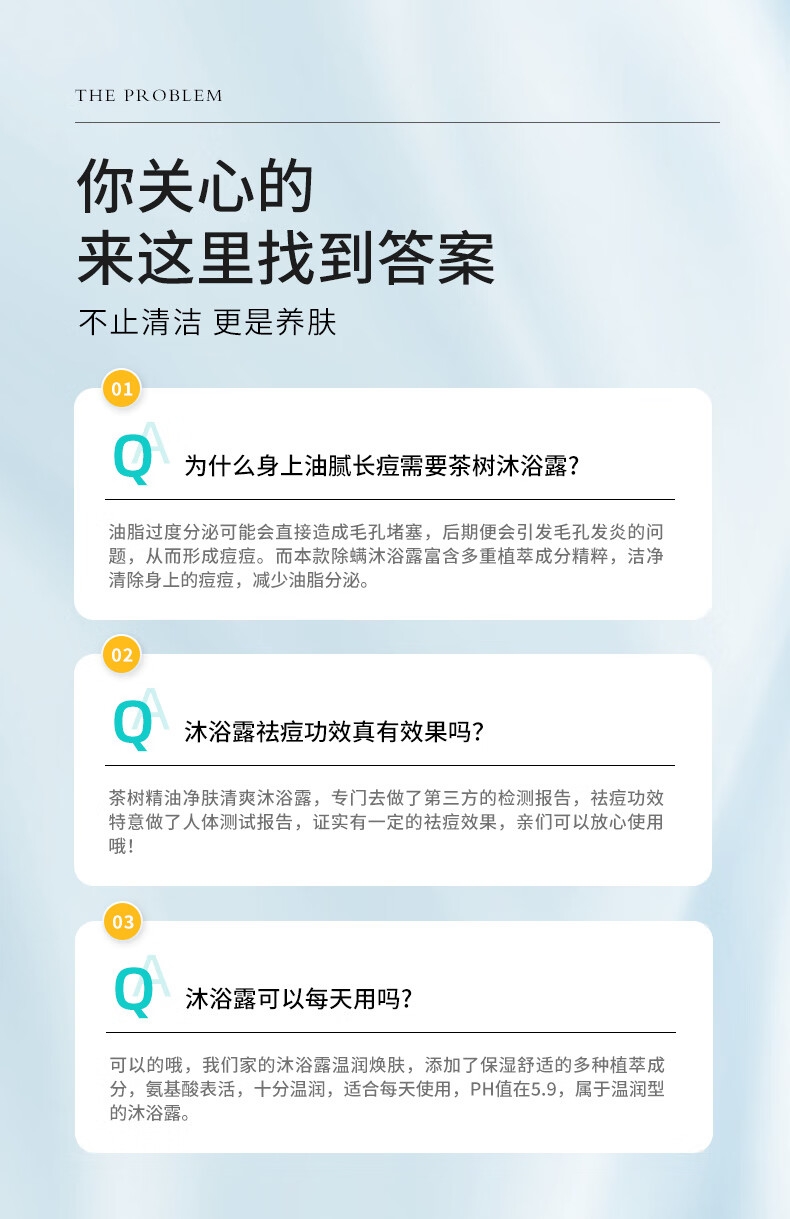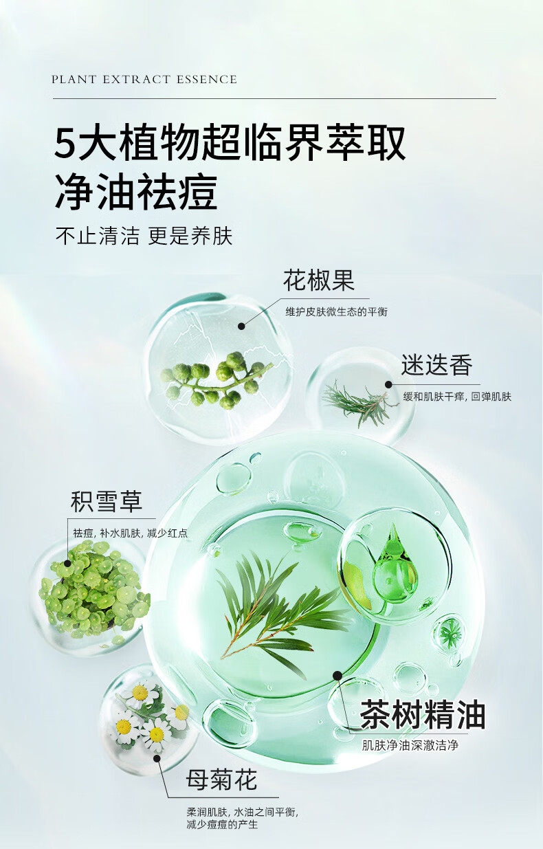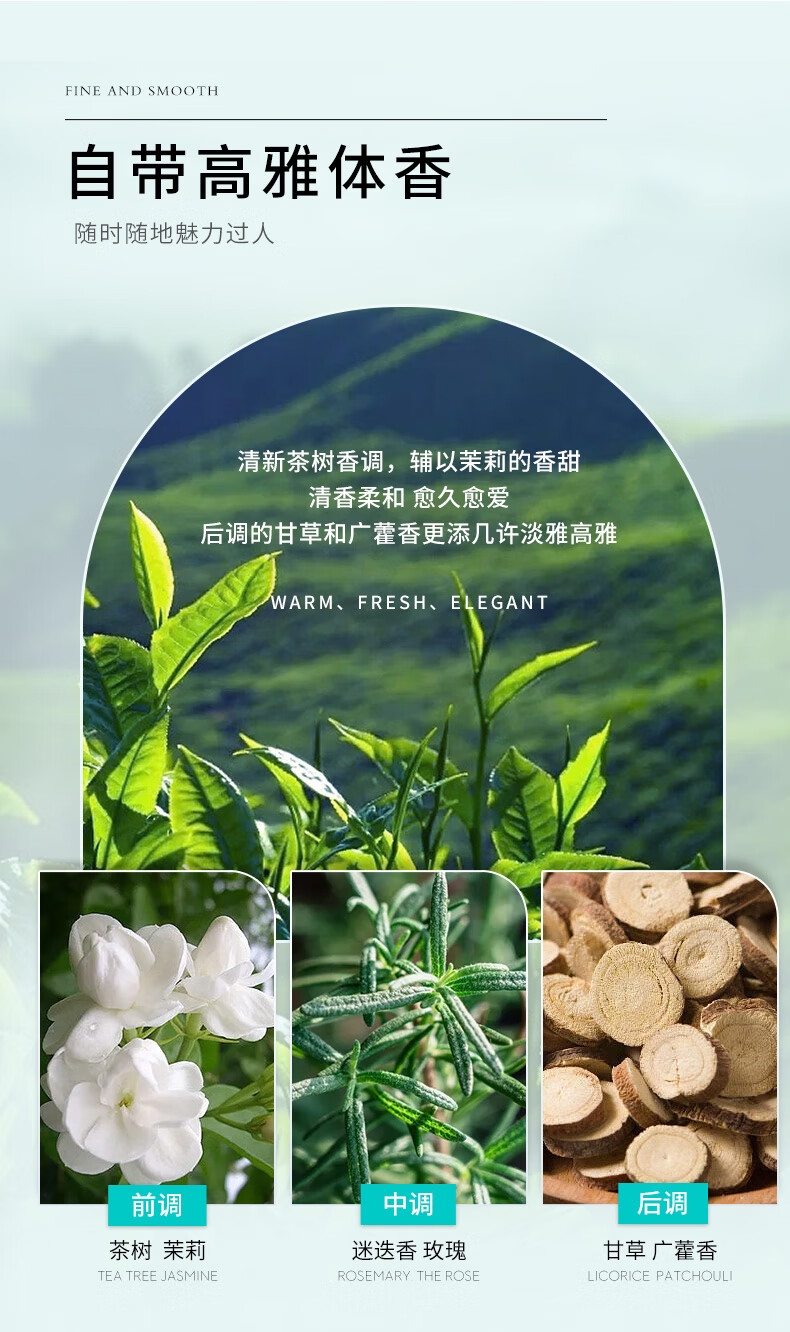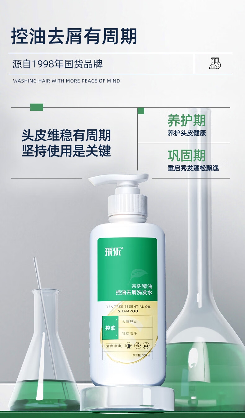 茶树精油,植萃修润,温润控油,净肤不油腻;专研ZPT去屑止痒配方,减少菌落滋生;柔润肌肤减少干燥,清新茶树香气不发腻