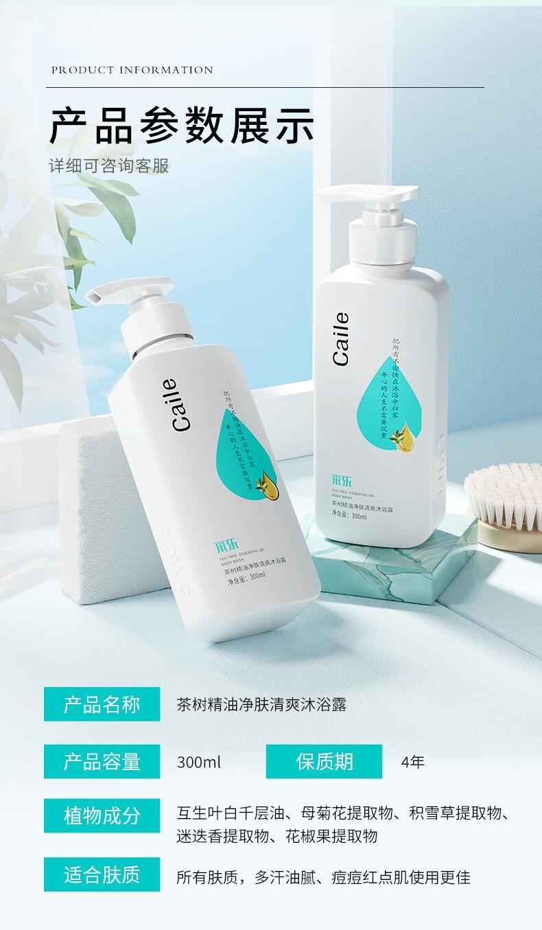 配置清单:采乐茶树精油控油去屑洗发水300ml 采乐茶树精油净肤清爽沐浴露300ml