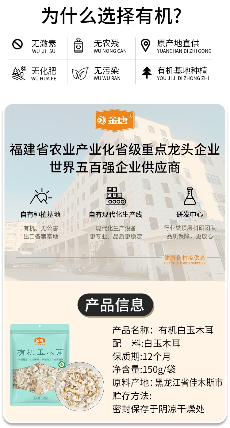 金唐 有机白玉木耳150g