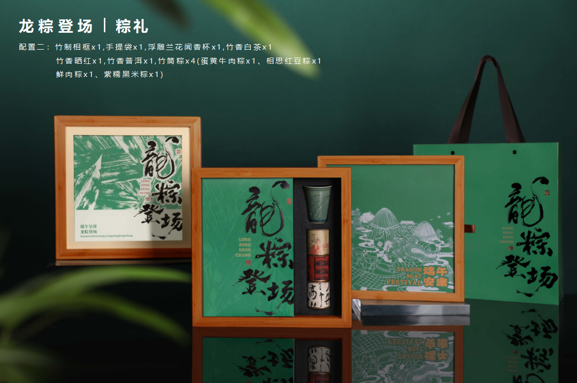 竹精选三款竹节茶,总有一款适合你;盒身采用方形竹盒,线条干净利落 天然楠竹而制;竹香与粽香的融合,使得竹筒粽更加回味无穷