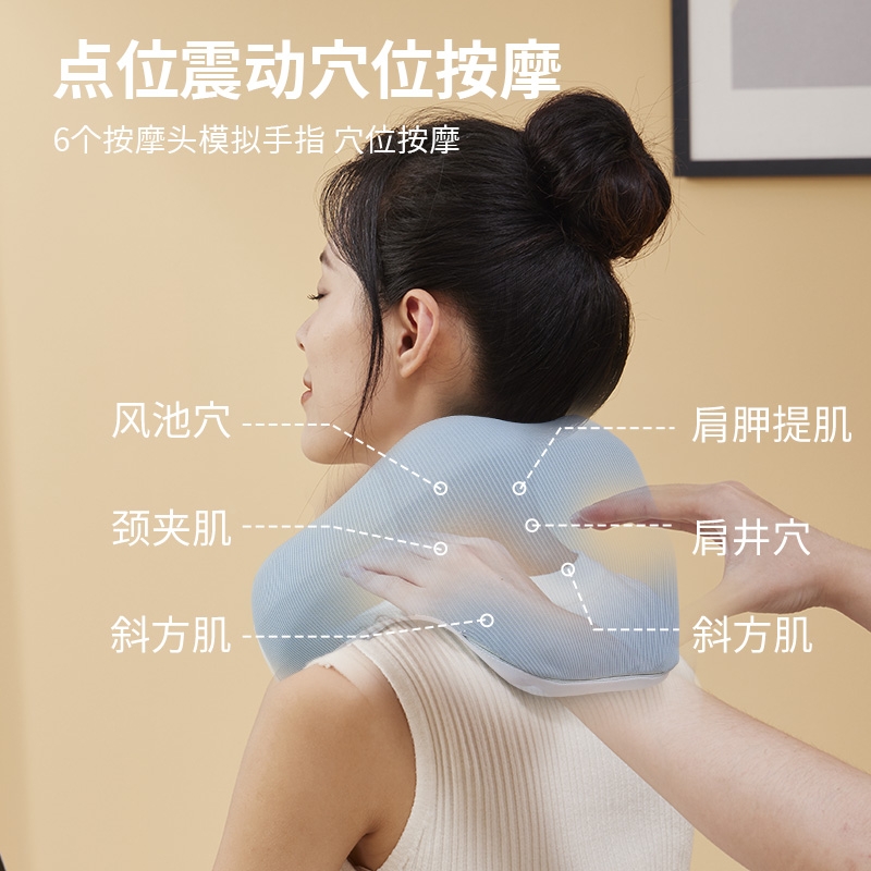 360°包围,按摩不刺痛;通过点震按摩,释放颈部压力;精细微震按摩,力度均匀